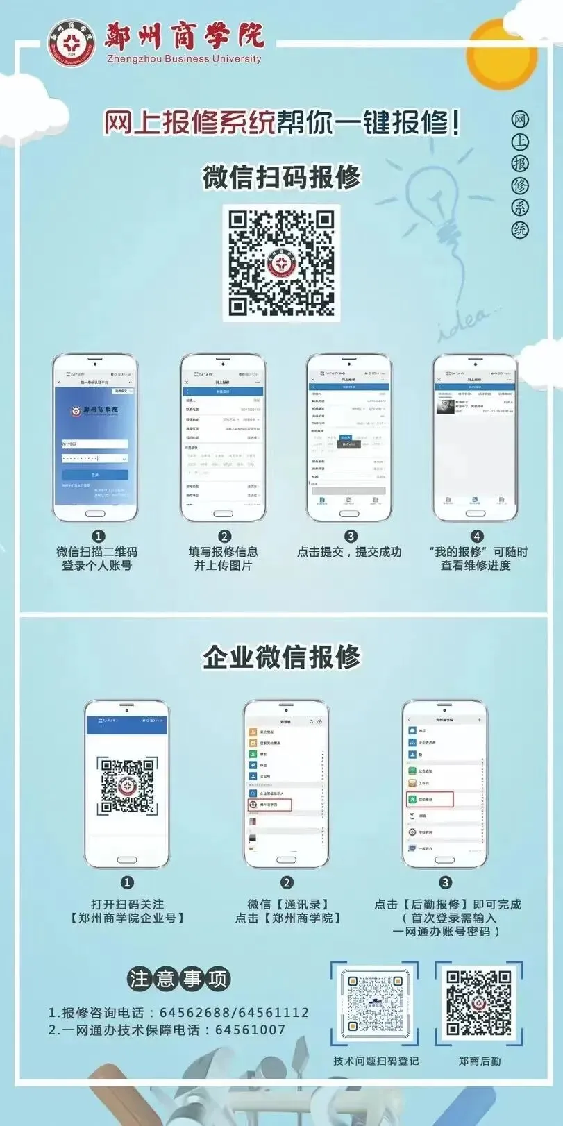 为提高后勤服务质量和管理信息化水平,最大程度为师生提供方便快捷的后勤保障服务,我校于近期引进安装了网络报修系统(测试),已基本具备试运行条件。根据计划的要求,于现在开始运行。网上报修流程如下: