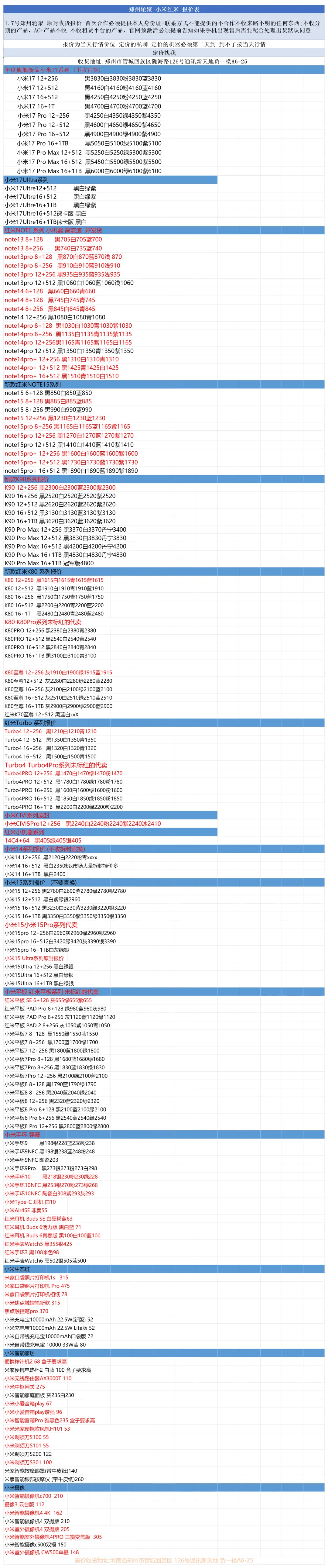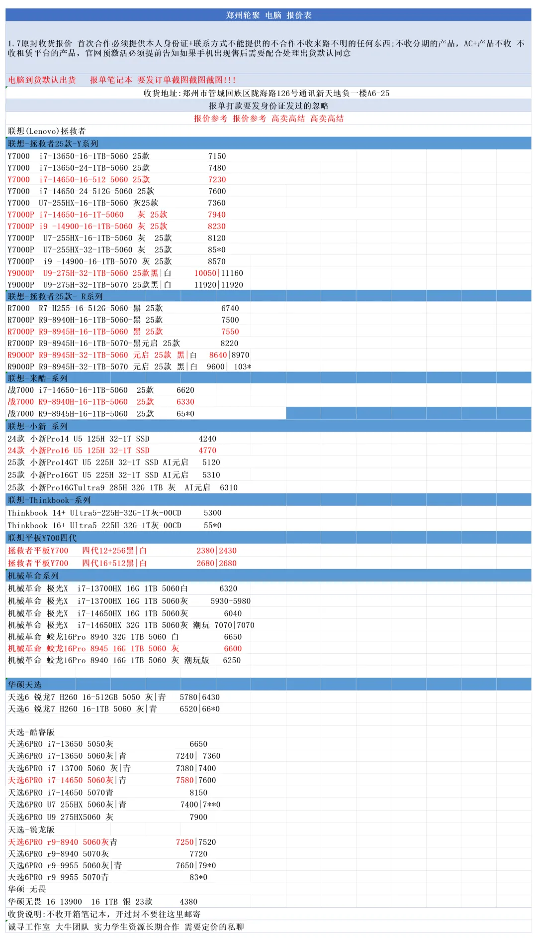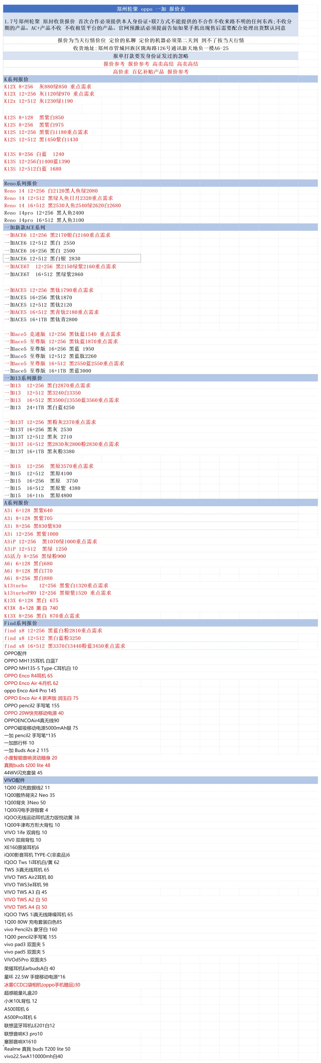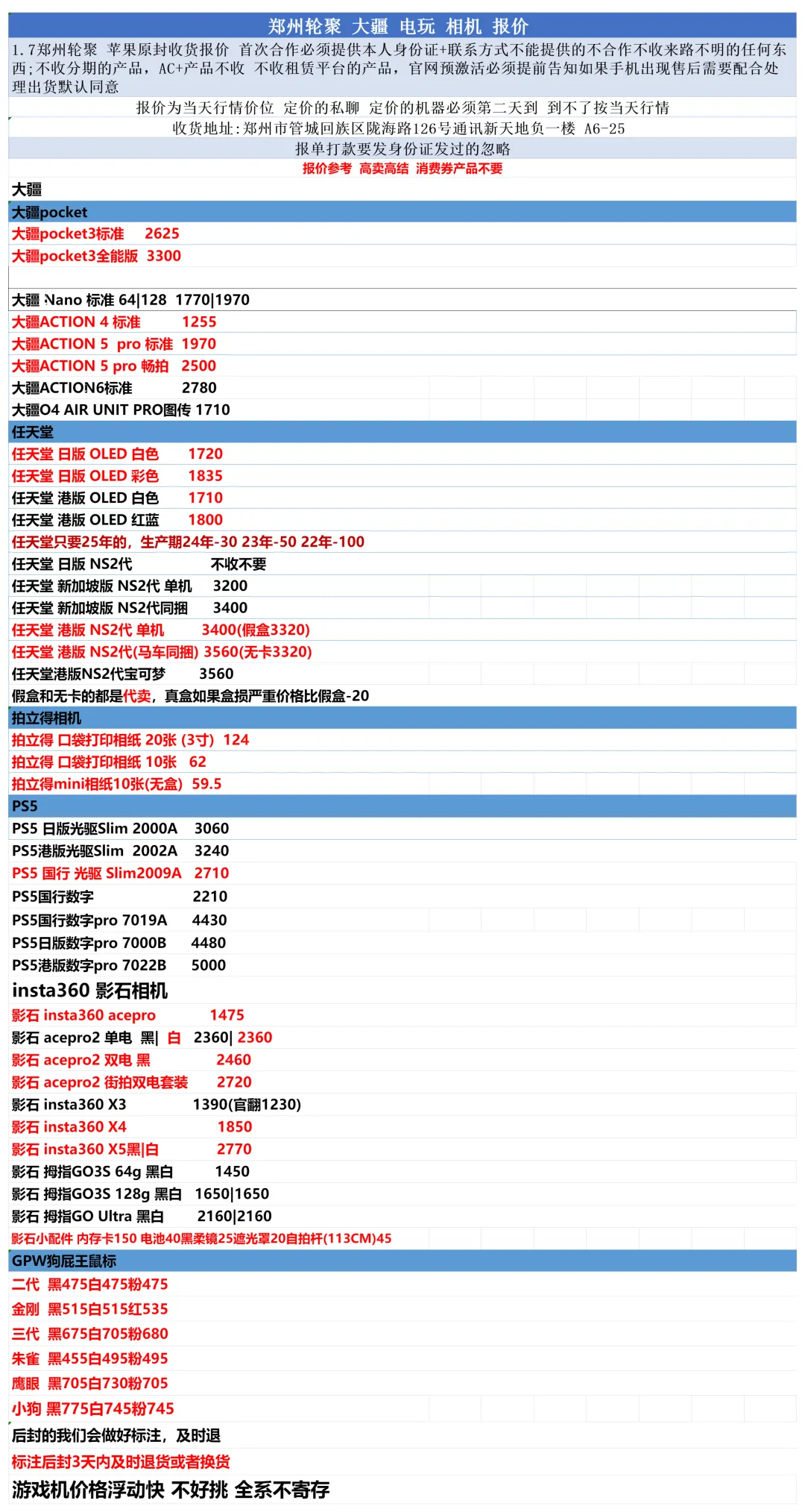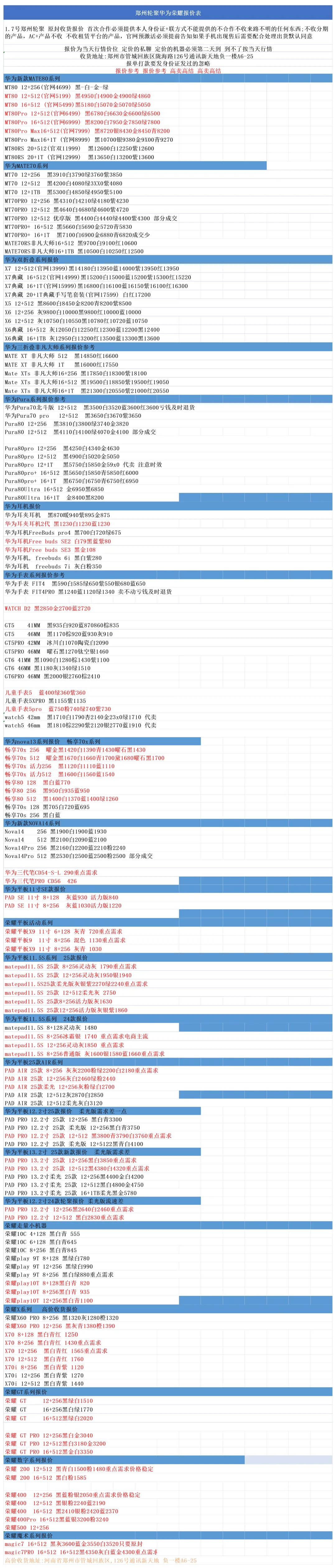 郑州轮聚通讯 2026年1.7日数码报价更新