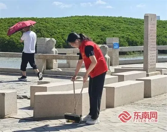清晨薄雾中,洛阳桥的青石板路陆陆续续迎来游客。安澜红驿的“红马甲”志愿者们早已准备就绪,提供问询指引、免费茶水、志愿讲解等服务,并主动讲述北宋名臣蔡襄主持造桥的历史与“养蛎固基”的古人智慧。