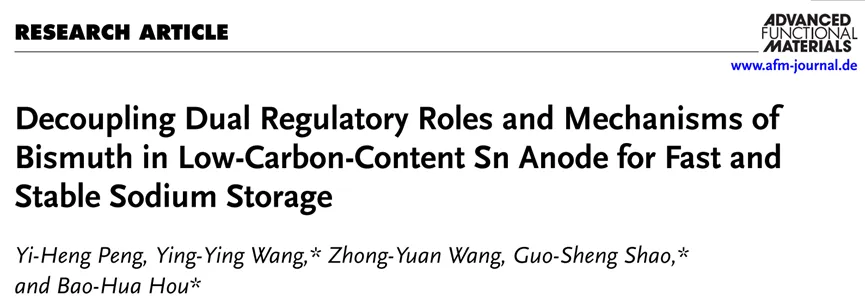 郑州大学侯宝华教授团队—Advanced Functional Materials:低碳锡负极负载Bi实现快速稳定的储钠性能及其机理研究