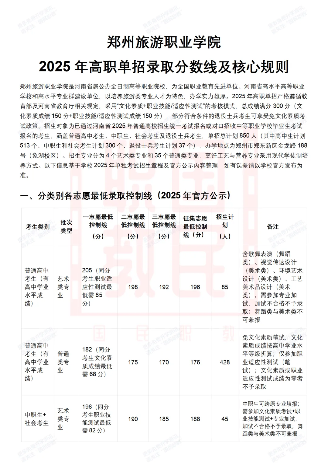 高职单招 | 郑州旅游职业学院2025年高职单招录取分数线及单招的同分排序、成绩折算与录取规则