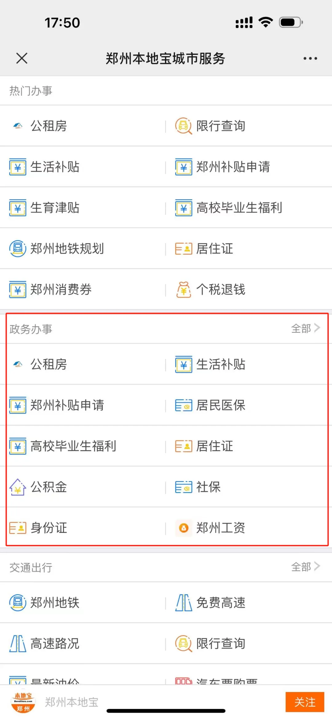 进入【郑州本地宝】公众号