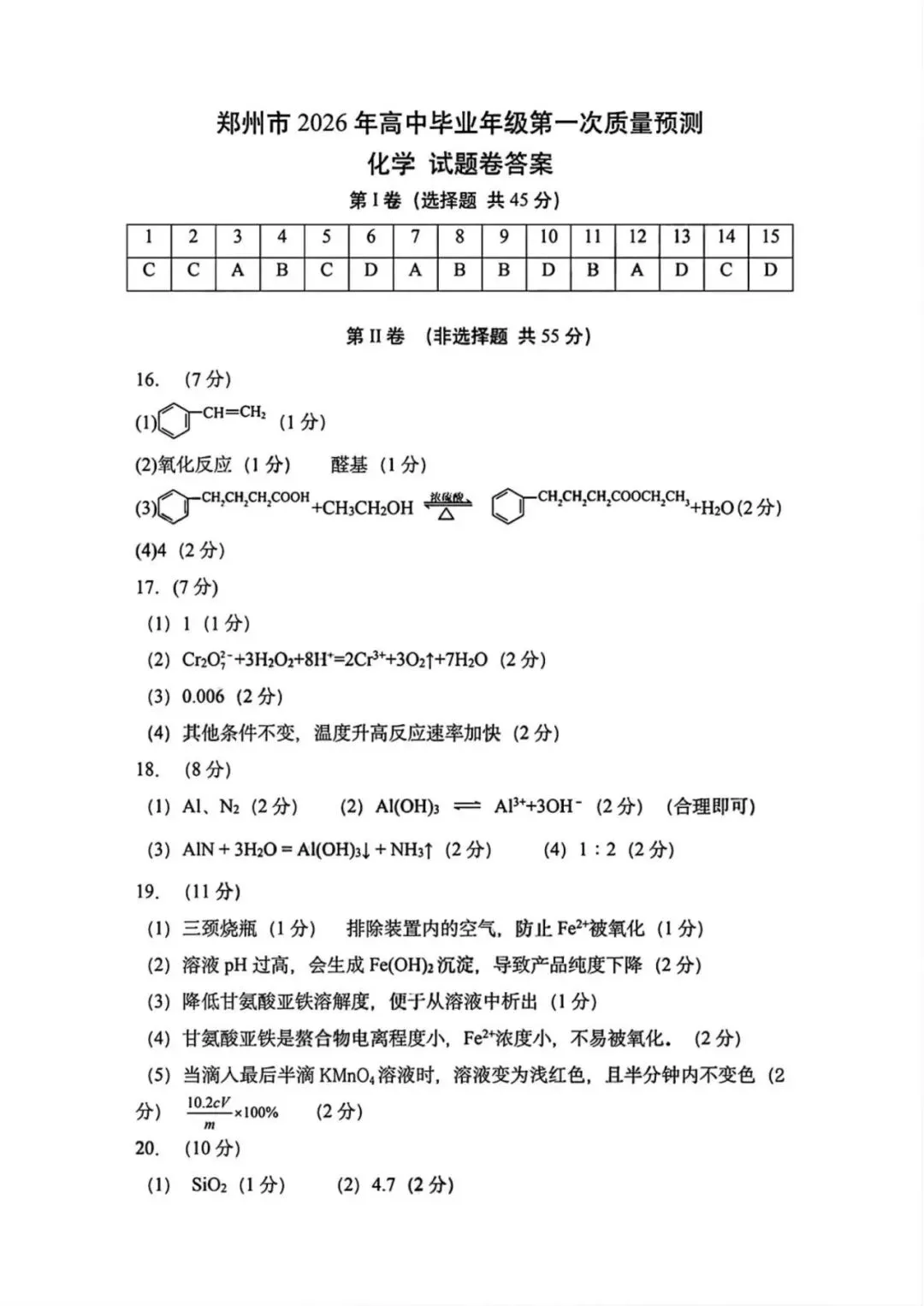 【260107】河南省郑州市2026年高三第一次质量预测