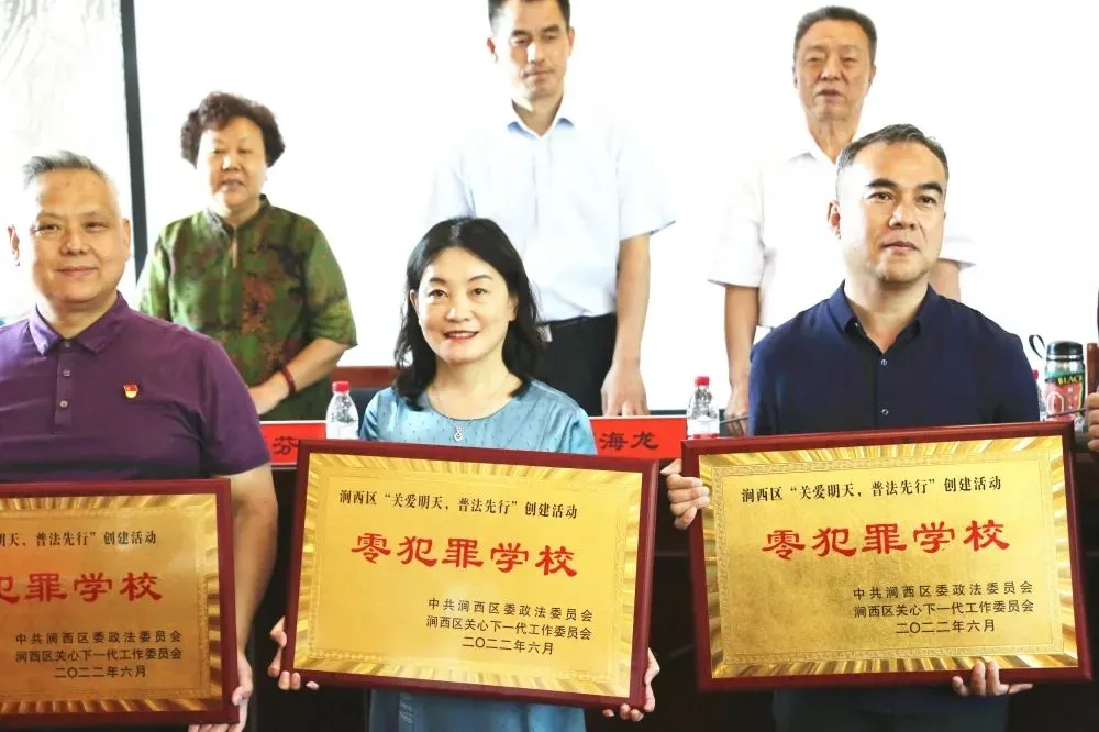6月25日上午,在中共涧西区委政法委员会、涧西区关心下一代工作委员会等九部门联合开展的涧西区“关爱明天、普法先行”创建“零犯罪社区”“零犯罪学校”的总结暨授牌大会上,洛阳市第五十六中学荣获涧西区首批“零犯罪学校”荣誉称号。这是我校切实加强青少年法治教育,预防青少年违法犯罪,努力创建平安校园所取得的重要成果之一。