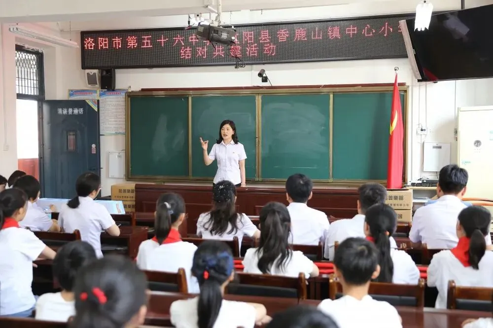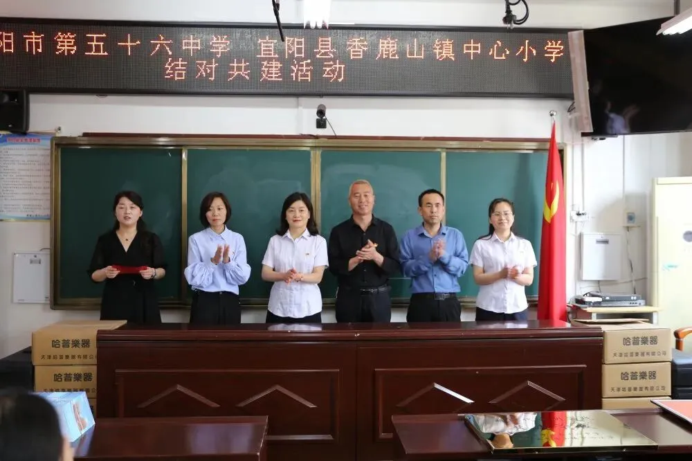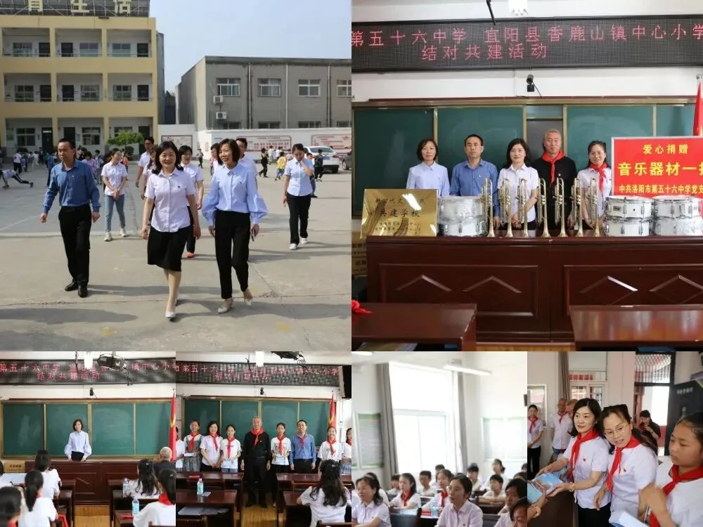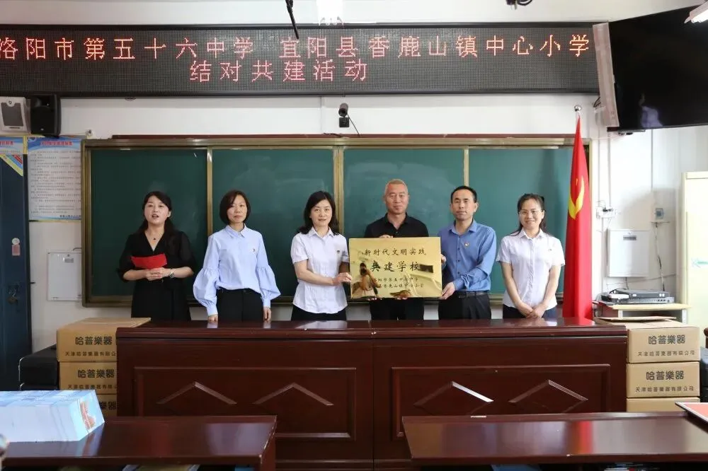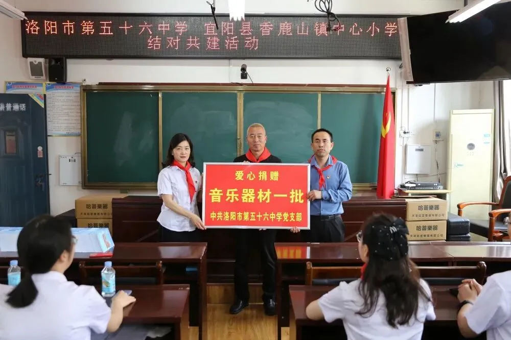 活动最后,梁焕霞校长代表洛阳市第五十六中学为香鹿山镇中心小学捐赠一批音乐器材和笔记本学习用品。