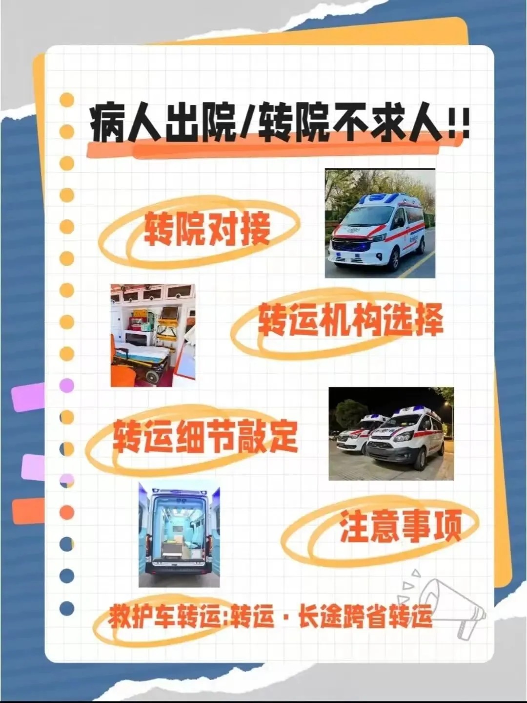 我们是120救护车出租转运咨询服务公司。在洛阳预约救护车和私人护送服务,120接送病人、出院转院、高铁飞机转运等场景均能高效覆盖。我们提供非急救转运服务,收费每公里7左右。