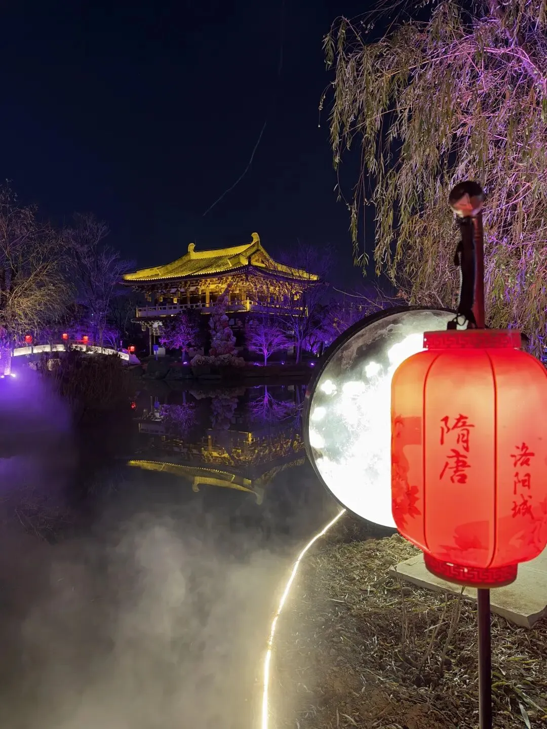 抵达洛阳直奔应天门,夜幕下灯火璀璨氛围感拉满;接着逛天堂明堂,感受大唐盛世的恢弘;再到九洲池漫步,夜色下亭台楼阁超有韵味,古风迷狂喜~