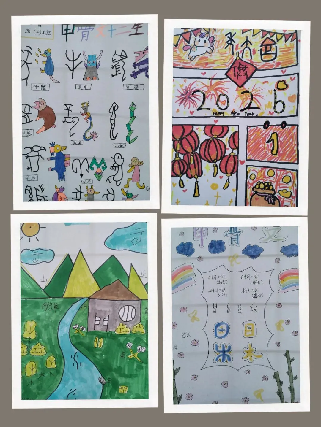 为传承中华优秀传统文化,让学生近距离感受甲骨文的独特魅力,安阳市北门西小学举办了以“甲骨绘古韵,童笔展新姿”为主题的元旦甲骨文绘画展示活动。全校学生积极参与,用画笔勾勒千年甲骨的灵动,用创意演绎古老文字的新生。