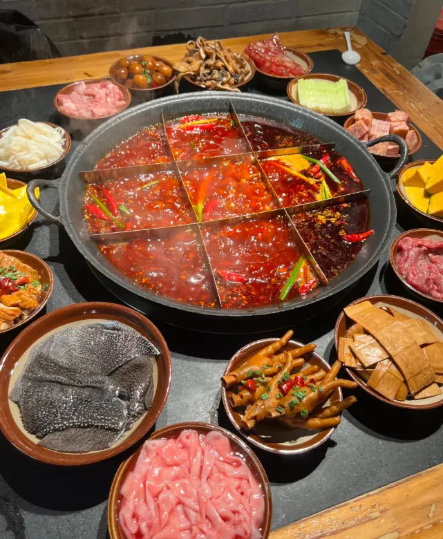 中午随便找家苍蝇馆子吃江湖菜,泡椒牛蛙、烂糊土豆丝,看着粗犷,入口全是细节。晚饭自然是火锅,本地人吃火锅不急,边聊边涮。毛肚七上八下,鸭肠微微卷曲,蘸料只需香油蒜泥,繁复了反而坏味。这里的美食不精致,但每一口都像是在和生活正面交锋。