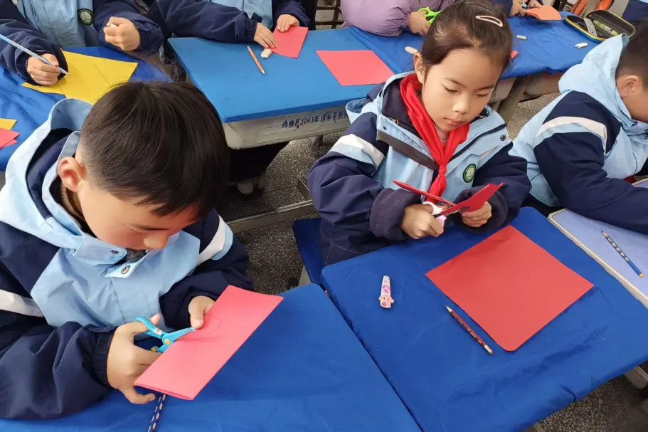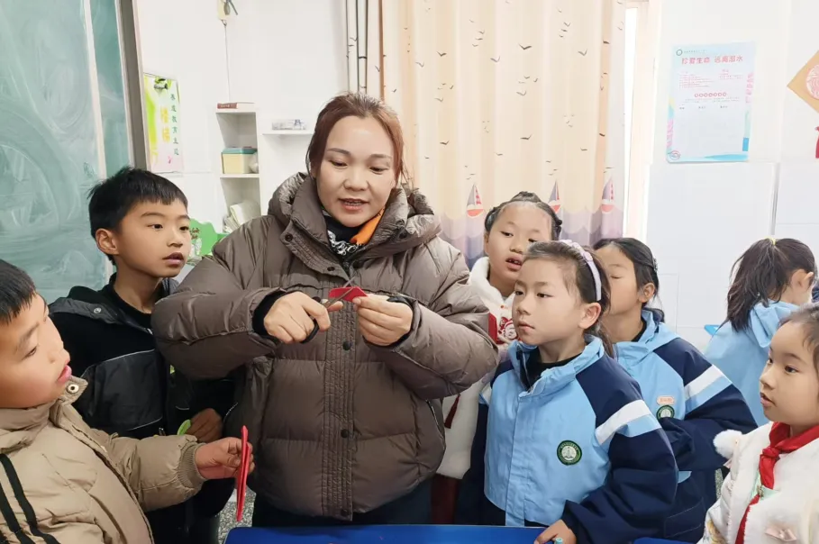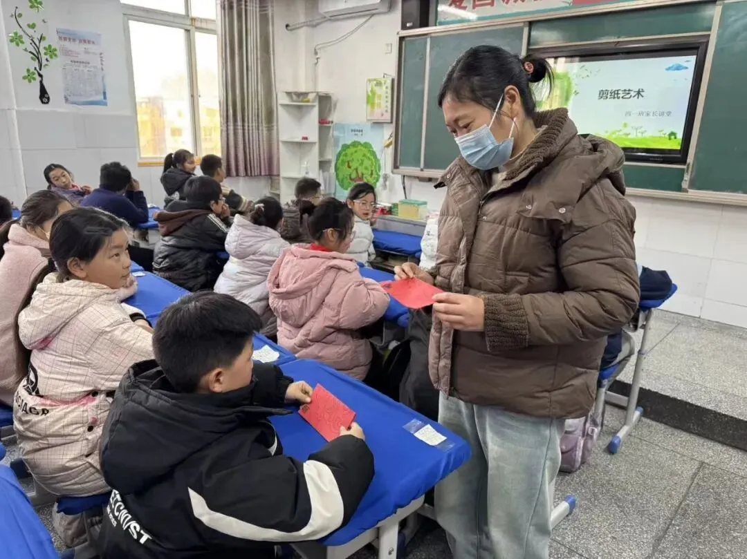 元旦的脚步悄然临近,四一班李泽林家长带着孩子们剪窗花、迎新年。红纸在指尖翻转,化作一朵朵喜庆的窗花,孩子们亲手装点教室,让浓浓的年味弥漫在校园,用创意点亮新年的期盼。