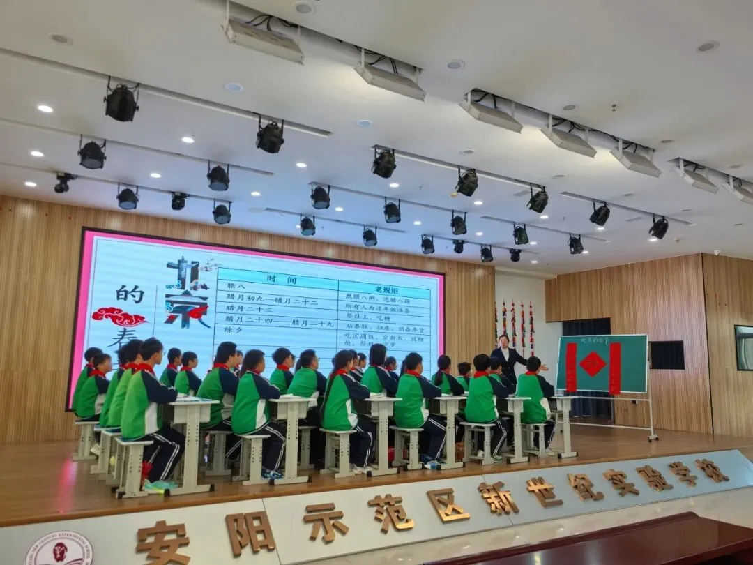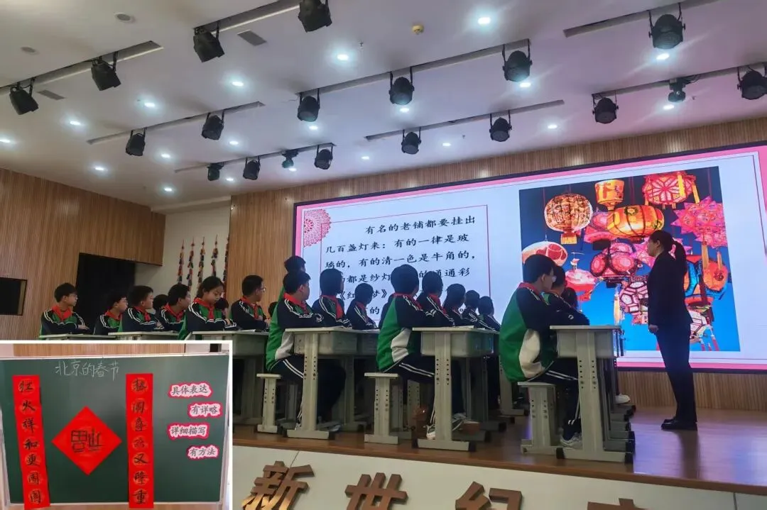 本课围绕老舍笔下的《北京的春节》展开,魏兰老师带领学生梳理了老北京春节从腊月初旬到正月十九的完整习俗,感受祭灶、扫房、守岁、逛庙会等活动的浓郁年味。教学中引导学生品味朴实生动的语言,体会作者对传统节日的喜爱与对民俗文化的赞美,同时对比自身春节体验,提升文化感知与文本赏析能力。