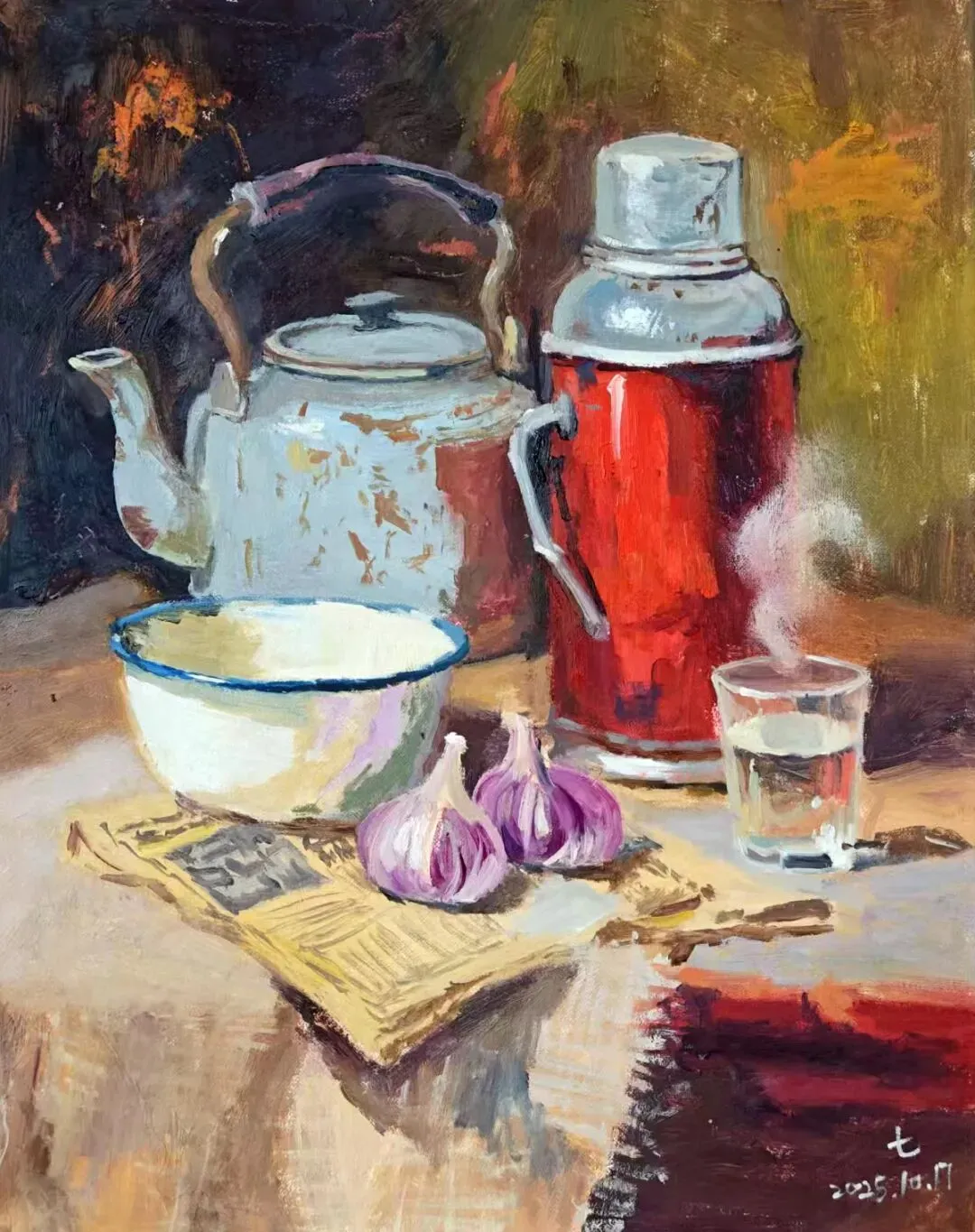 洹水汤汤,太行巍巍。安阳这片浸润三千年殷商文明的沃土,在城市更新与乡村振兴的浪潮中,始终焕发着文化创新的活力。为发掘油画新生力量,彰显本土创作活力,安阳市美术家协会油画艺委会精心筹备本次展览,为全市美术创作新生力量搭建展示与成长的平台。自征稿启动以来,全市美术爱好者、高校学子及基层创作者踊跃响应,积极投稿。经专家评委严格审核,择优遴选,最终评出获奖作品29件、入选作品35件。参展作品以油画为媒,题材包罗万象:既有对城市变迁、市井烟火的细腻捕捉,也有对壮丽山河、青春叙事的多元表达,更不乏对生活哲思、未来想象的大胆探索。创作者们采用多样表现手法,赋予作品鲜明的个性印记与时代气息。不少作品于细微处见真章,于平凡中掘新意,既饱含作者对生活的热爱,更彰显着新生代不拘一格的探索锐气与创新勇气。值此元旦佳节,我们以艺为礼,为安阳市民奉上这场精彩纷呈的视觉盛宴。愿艺术之美浸润岁月,祝愿大家在新的一年里万事如意,与美好不期而遇!白梦琦 《旧时光里的烟火》 50×40cm