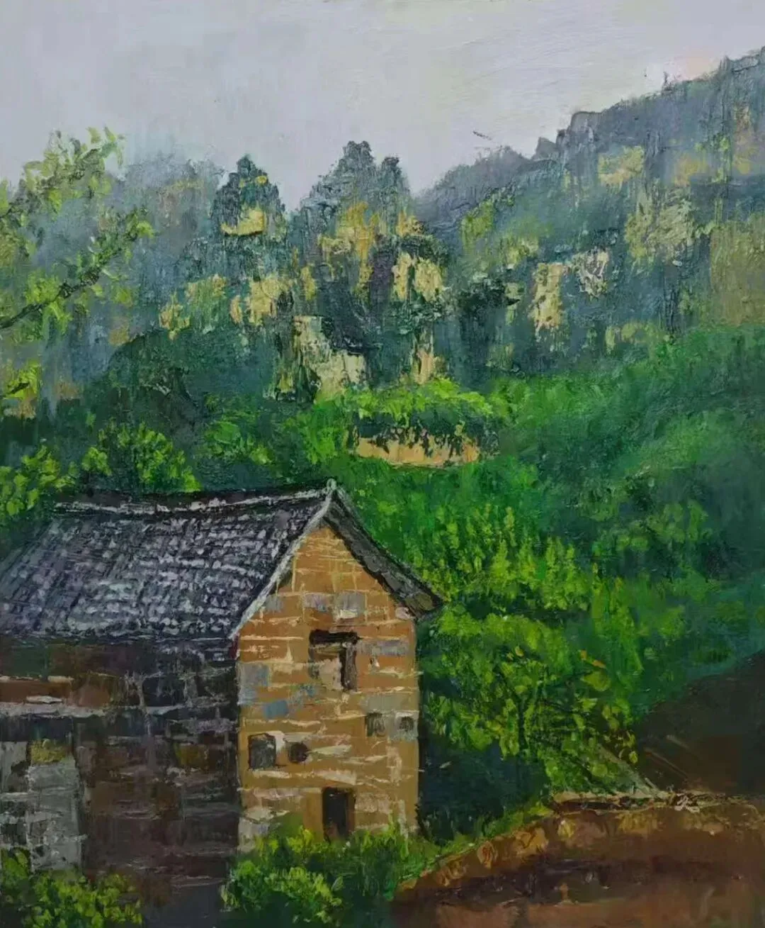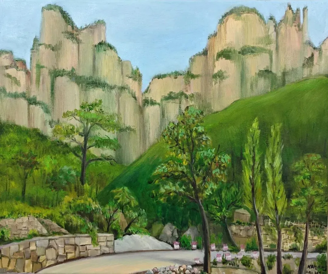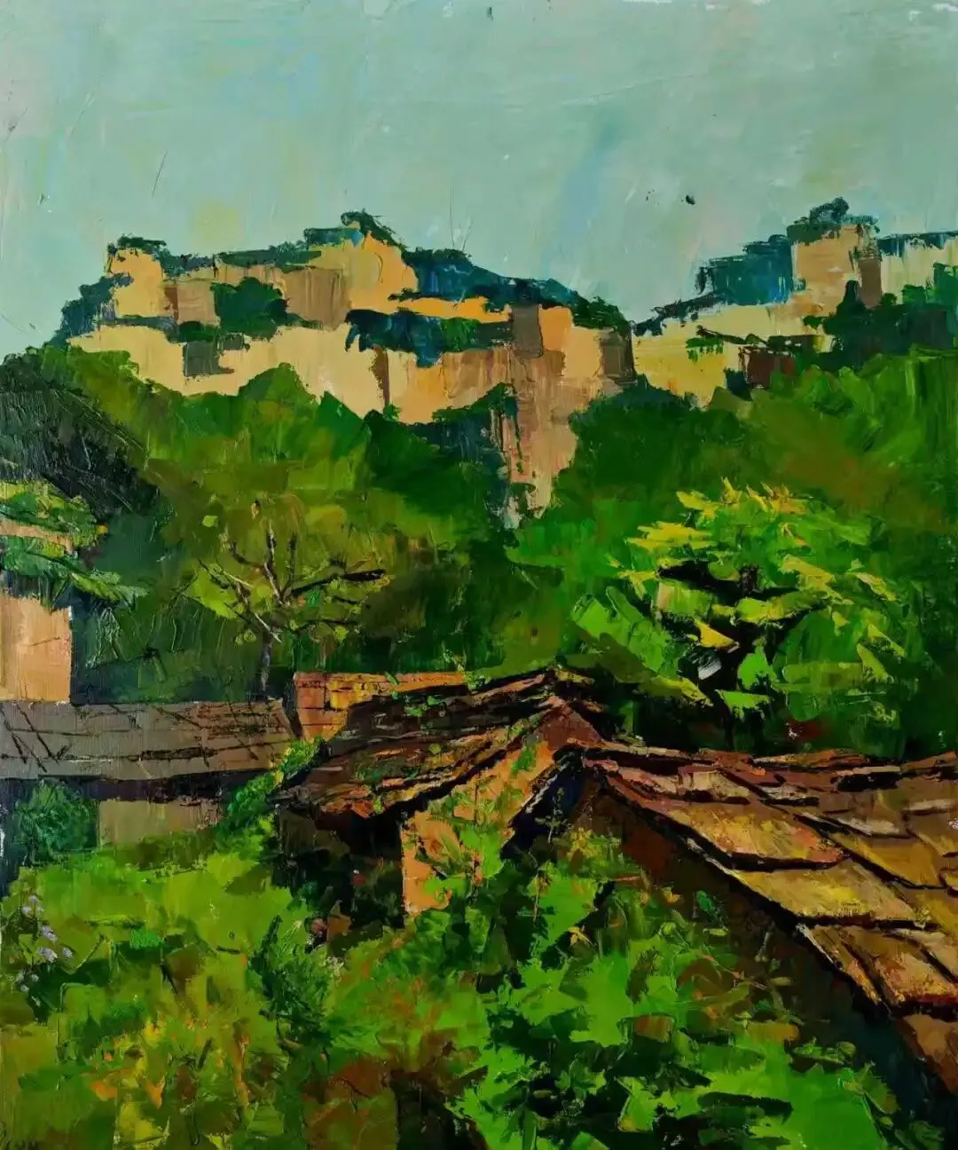 韩仲凯 《崖上太行,绿意人家》 50x60cm