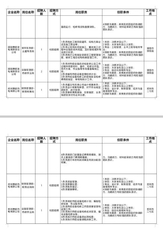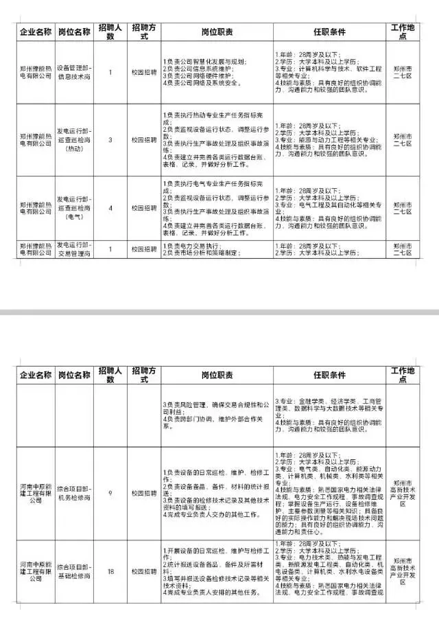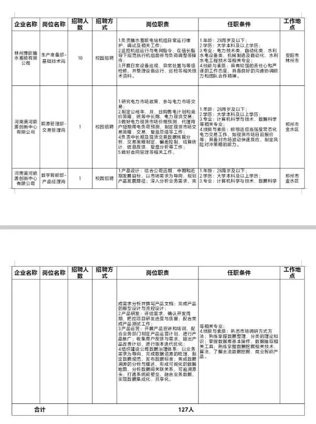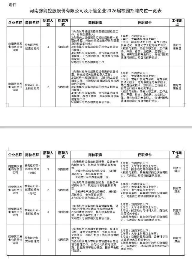 河南豫能控股股份有限公司本次计划招聘127人,职责及任职条件详见附件《河南豫能控股股份有限公司及所管企业2026届校园招聘岗位一览表》。