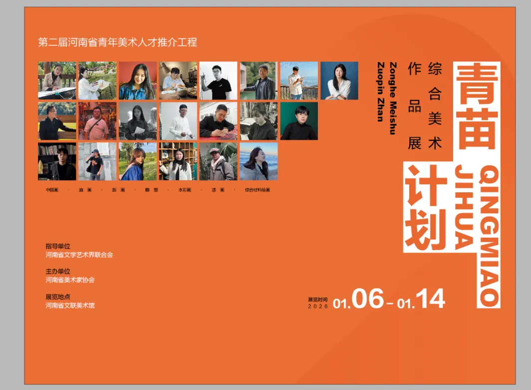 2026年1月7日,“第二届河南省青年美术人才推介工程——青苗计划”综合美术作品展在河南省文联美术馆开幕。本次展览由河南省文学艺术界联合会指导、河南省美术家协会主办,是河南省面向青年美术人才的重要推介平台。