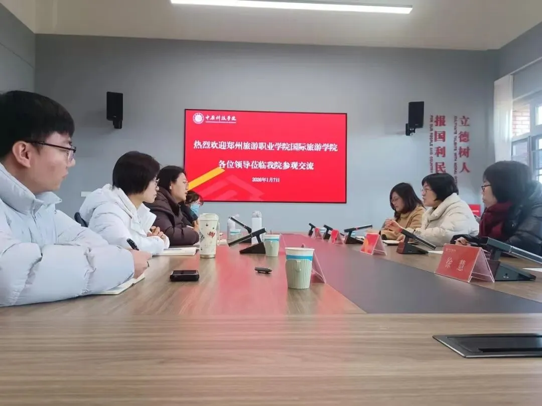 1月7日,国际旅游学院院长刘瑞娜携商务英语教研室主任王萍、旅游英语教研室代主任景艳、教学科研办公室主任徐慧,赴中原科技学院许昌校区进行访问交流。中原科技学院校长助理、外国语学院院长赵妤及学院管理团队进行了热情接待。