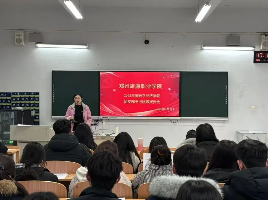 2026年1月7日郑州旅游职业学院数字经济学院“团支部自评述职报告”在1B203教室举行。本次活动由学院团总支书记谢锡莹书记主持,在校团支书和班级学生代表以及学生助理到场参加。