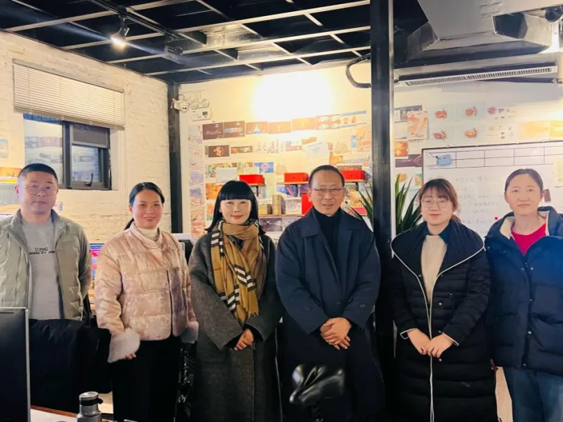 2025年12月29日下午,为精准对接数字内容产业发展趋势,深化产教融合协同育人,文法学院副院长魏景霞带队,网络与新媒体教研室主任张培及教师代表马汇、王希一行四人,赴郑州壹号片场开展专题调研交流。郑州壹号片场创始人吴大勇、新数字工作室负责人王鹤热情接待了调研团队,双方围绕 AIGC 技术赋能漫剧创作的产业实践、人才需求及校企合作路径展开深度研讨。