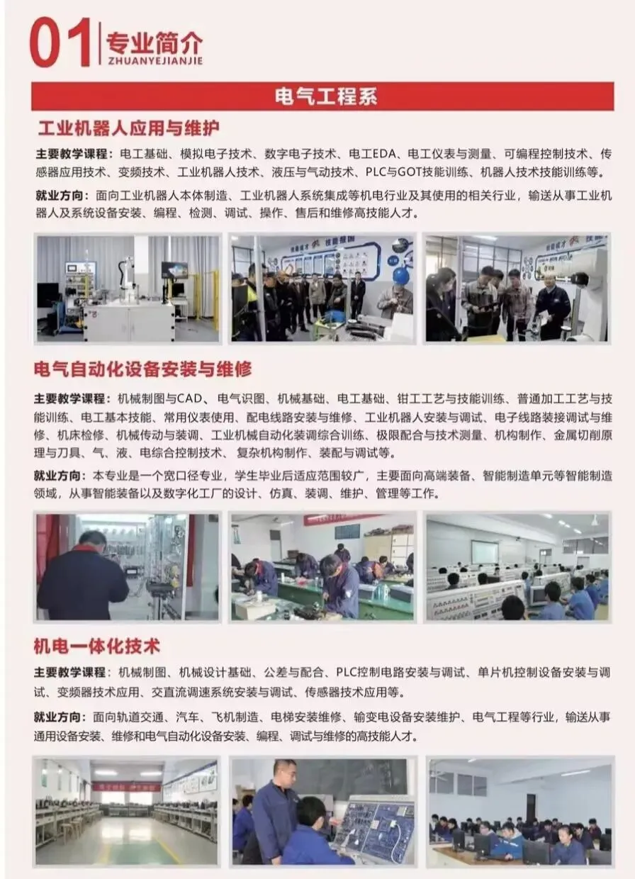 2️⃣ 高级工(专科层次):初中起点5年,高中起点3年,覆盖工业机器人、新能源汽车等24个专业,毕业等同大专学历,可对口升学。