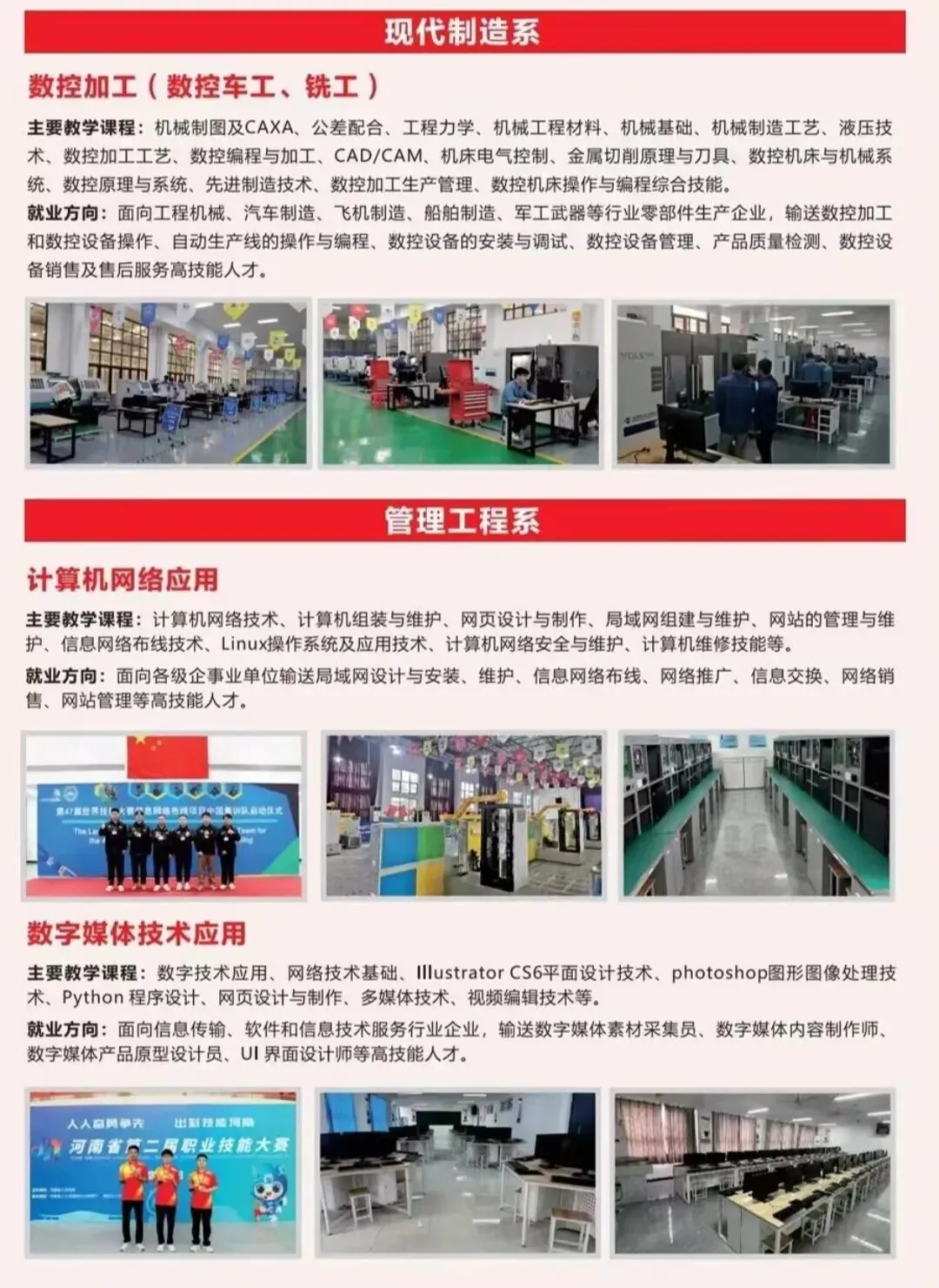 1️⃣ 专业设置前沿:开设智能制造、新能源汽车、数字媒体、电子商务等20+热门专业,其中数控技术专业为省级示范专业