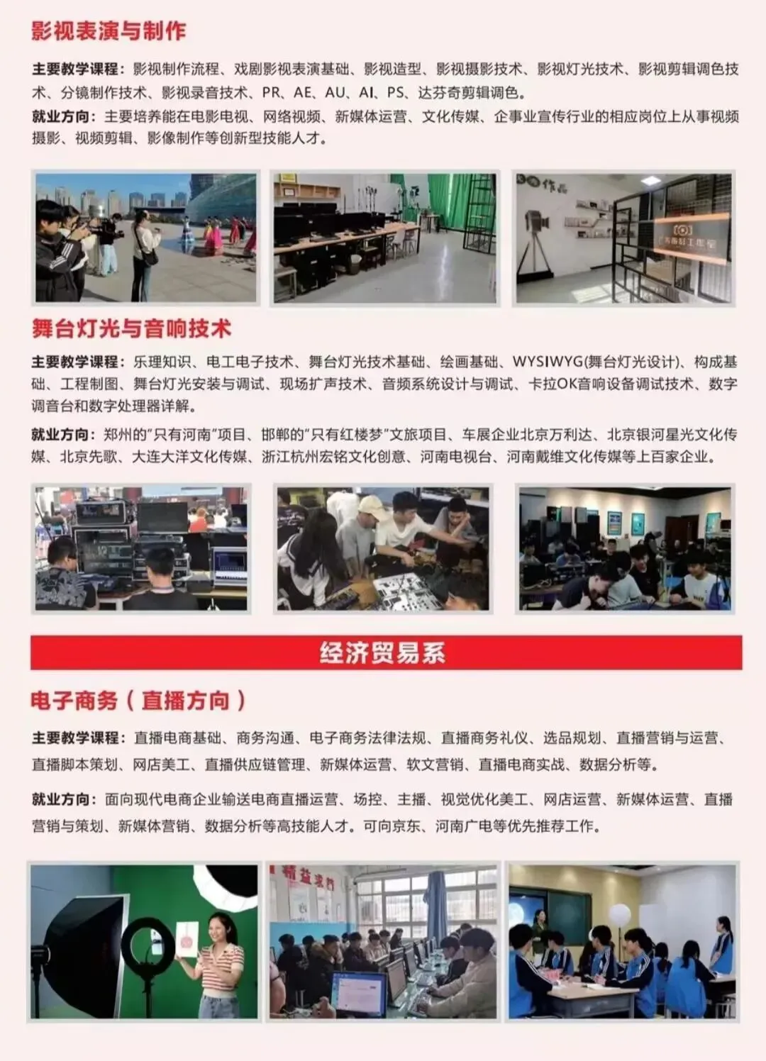 3️⃣ 数字技术与现代服务:三维动画、Unity开发、直播电商运营,适合喜欢创意和互联网的同学。