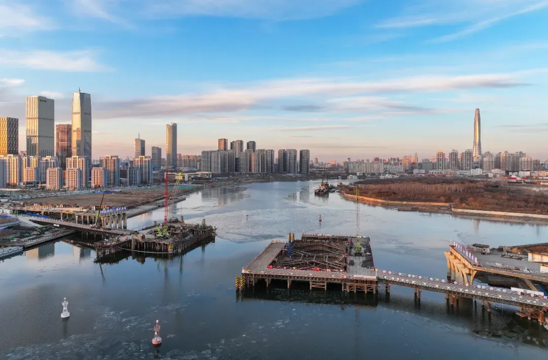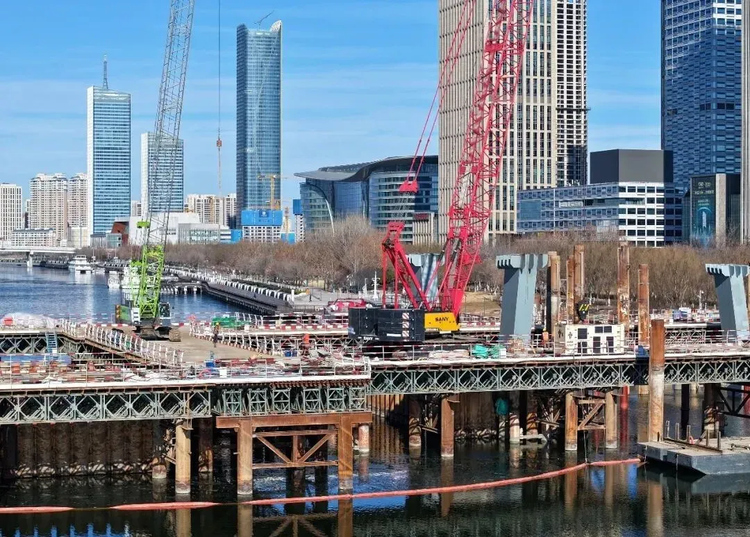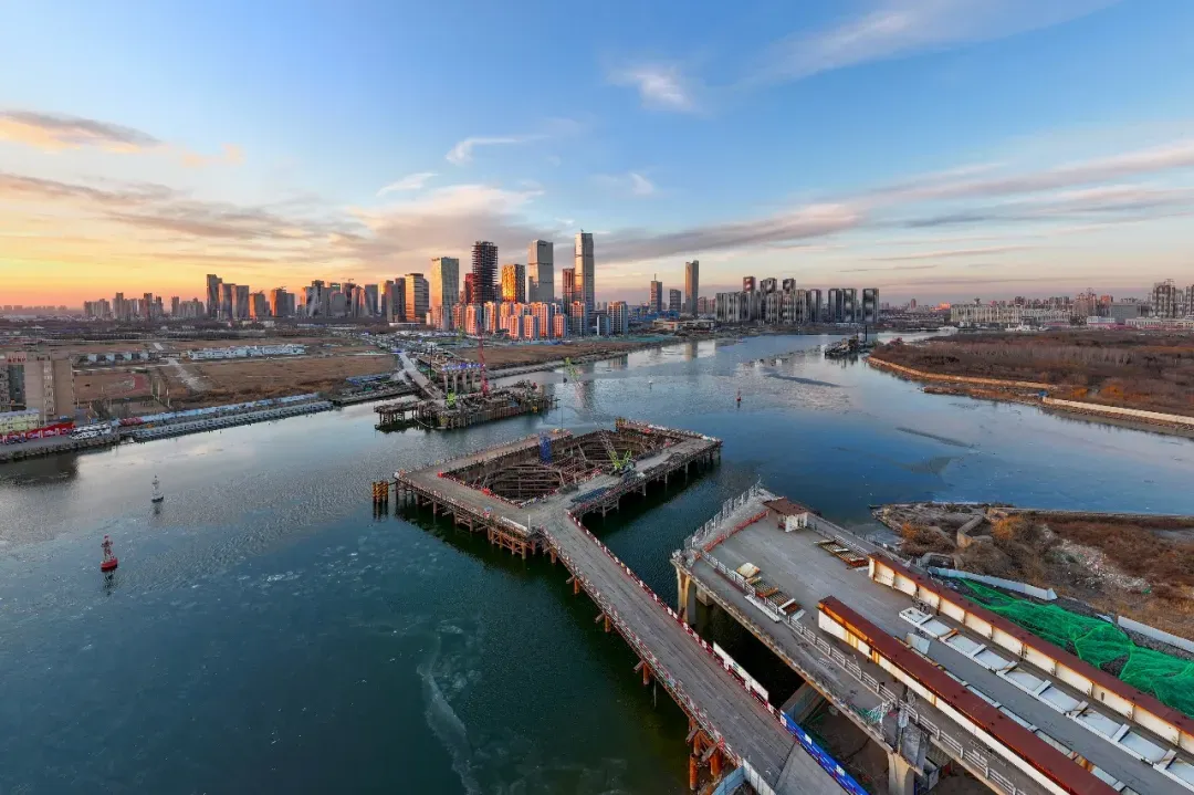 “两桥”是连接于家堡金融区与响螺湾商务区、大沽生活区的关键交通纽带,更是补强城市交通短板的重点民生工程。“两桥”项目敲定设计方案后,即刻复工建设,对旧桥结构进行拆除,改建为开启式桥梁。