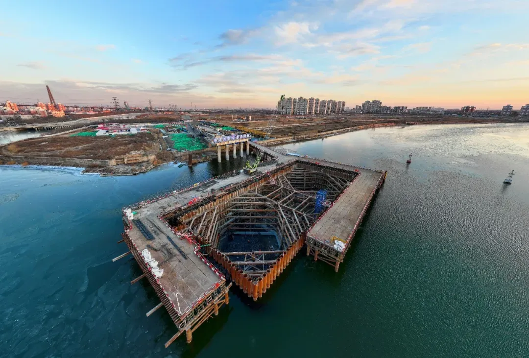 近日,天津经开区“两桥”项目施工迎来了新进展,随着2700立方混凝土完成浇筑,于新道跨海河大桥(以下简称于新桥)项目顺利完成大沽侧主墩封底施工,正式转入主墩承台施工阶段;安阳道跨海河大桥(以下简称安阳桥)项目于家堡侧顺利完成承台等下部结构施工,为后续施工奠定了坚实基础。