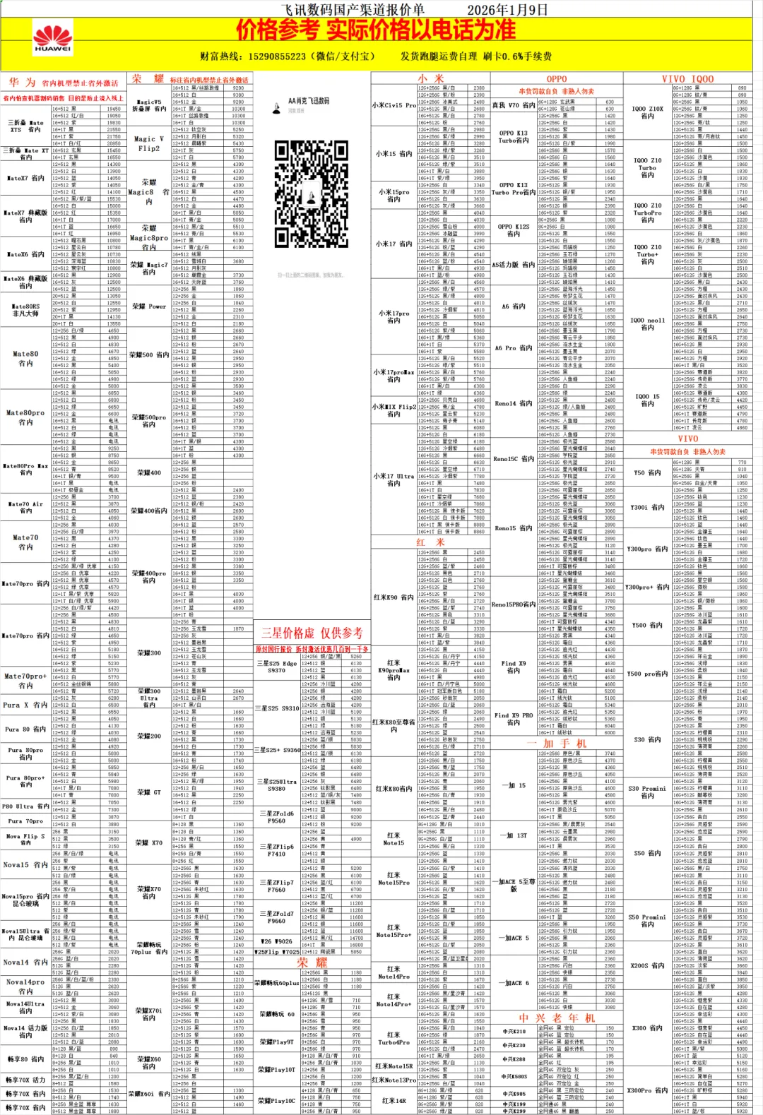 2026年1月9日渠道报价单 关注公众号查看每日报价