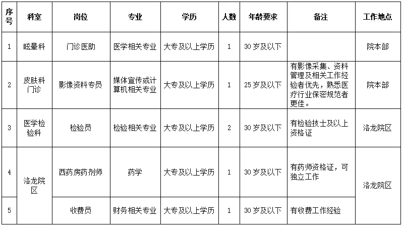 招聘岗位:医护人员