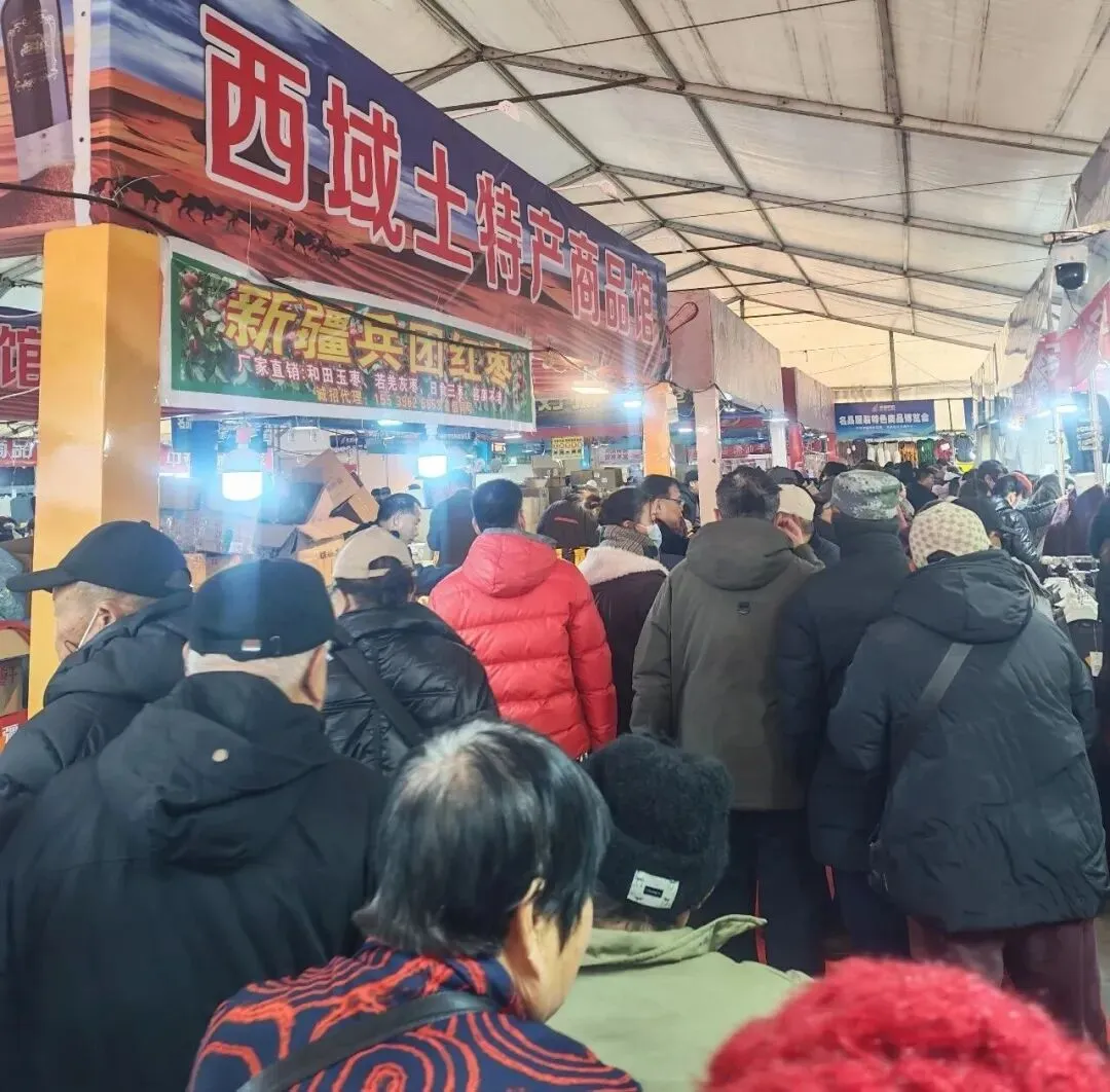 凑过去才看见,白色大棚子上扯着巨幅蓝布:“2026 首届・安阳进出口商品秋冬服装博览会”。掀开门帘钻进去的瞬间,我直接被挤得退了半步:里头人挨人、肩碰肩,穿棉服的老头攥着购物袋守在干货摊前,裹围巾的阿姨胳膊夹俩纸箱子,愣是从人缝里拱到了 “新疆兵团红枣” 的摊位前。