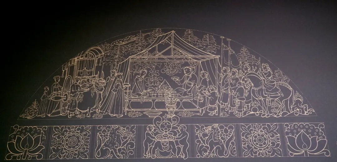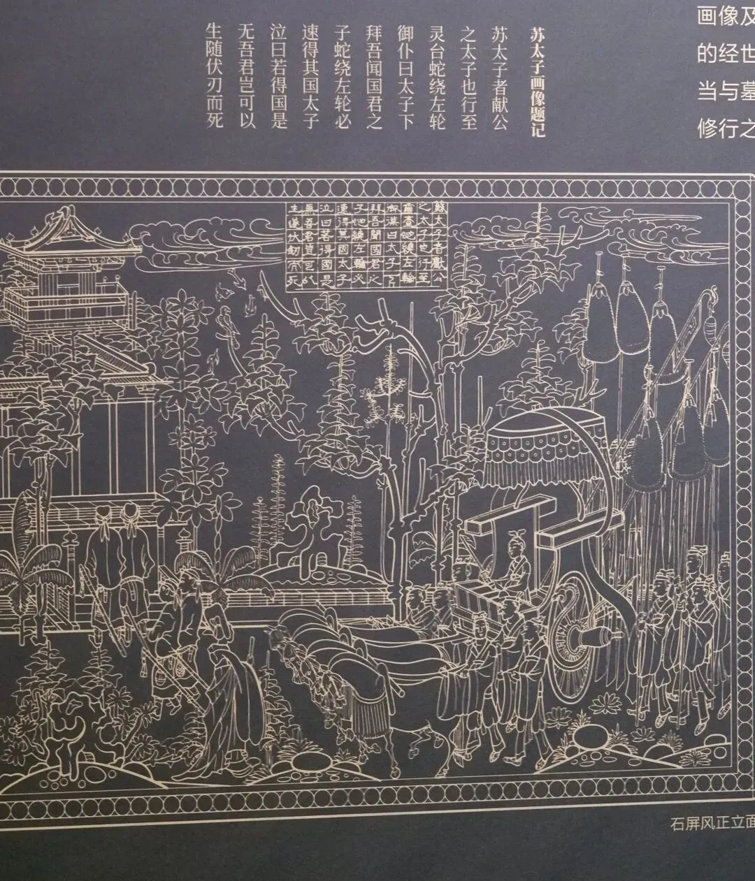 2020年4月,隋代麹庆墓于一处房地产施工项目中惊现于世,随后考古人员进行了抢救性发掘。据报告记载,墓葬上部虽遭破坏,人骨无存,但剩余的随葬品依然颇为丰富,共出土石器、瓷器、铁器等各类器物141件(套)。其中最为重要的,便是这件汉白玉制成的石棺床。这件石棺床并非孤例,其形制、图案与尺寸,与甘肃天水石马坪出土的另一件隋代石棺床几乎一致。天水古属陇西郡,这一关联恰好印证了其工艺风格源自麹庆的祖籍地——陇西。麹庆乃高昌开国国王麴嘉的直系孙辈,然而,他的祖父与父亲早已接受中原王朝的册封与官职,家族重心东移,转型为效力于北魏-北齐系统的官僚贵族。因此,他生于洛阳,长于中原,一生恰是北朝至隋那段民族大融合、丝路交流鼎盛时代的缩影。而墓中这件融合祆教、佛教与汉文化于一身的石棺床,便是他复杂身份最沉默、也最雄辩的见证。祆教,又称琐罗亚斯德教,因崇拜圣火而在中国得名“拜火教”。它源自古代波斯,是世界上最古老的宗教之一,其核心是善与恶的二元论争。南北朝时,它随丝绸之路商旅的脚步声传入中土,于隋唐年间一度流行,但其信仰者仍主要以来自波斯、粟特等地的胡人为主。祆教原本禁止土葬,奉行天葬。然而,入华的信徒在坚守信仰核心——圣火坛——的同时,也审慎地妥协,因地制宜地采用了汉地流行的“石棺床”葬式。眼前这件石棺床正中的圣火坛图案,因而成为研究祆教在华流变与调适的关键物证。让我们细看这件棺床:其视觉的中心,无疑是前挡板正中那座由力士奋力托举的祆教圣火坛,两侧肃立着手持法杖的神王护卫。下方的壶门内,蛰伏着肩生双翼、来自西域想象的瑞壸(kūn)。而壸门上方,则是八位头戴宝冠、手持琵琶、横笛等各式胡乐器的伎乐天人,仿佛正为这场神圣的祭祀奏响无声的乐章。视线移向两侧及后方,七块围屏石板徐徐展开一幅汉化生活的长卷:宴饮、出行、抚琴、修行……画中人身着汉家衣裳,活动于亭台楼阁、水榭园林之间。可能有点不太清晰,以下是我在网上找到的线稿,供大家比对参考。再转向后挡板与台阶,莲花舒展,流云缭绕,凤鸟等华夏祥瑞翩然其上,构筑了一个完全中式的心灵归宿。从正襟危坐的胡天神祇,到烟火气十足的中原生活,再到寓意吉祥的汉地纹饰,这具棺床完成了一次从神圣到世俗、从异域到本土的静默叙事。屏风四面装饰着圆圈纹,正反两面均以阴线刻就。正面刻有《孝子传》中晋献公太子“蛇绕左轮”的著名孝行故事,并附有长篇题记。然而,当视线转向背面,画风陡然一变:一幅“树下牧牛图”悠然呈现,其中的牧童短发、高鼻、戴耳环,俨然一副西域胡人模样,身旁的牛也刻画得栩栩如生。一屏之间,正面是承载儒家道德的汉地典故,背面却是充满异域风情的胡人生活小品,这种奇妙的并置,将那个时代文化交融的日常性与深刻性,体现得淋漓尽致。同墓出土的一方石质墓门门额,虽已残损,但雕工之精美依旧令人赞叹。其画面被巧妙地分为三格:中央是墓主人夫妇宴饮休憩,右侧为出行仪仗,左侧则备好牛车。这些题材本是北朝晚期墓葬壁画的常见内容,在隋代被浓缩、移植到一方门额之上,清晰地展现了墓葬装饰艺术在朝代更迭间的传承脉络。在展厅入口处,策展人用第一人称为麹庆写下了一段温暖的小传:“孩童时,我居住在魏都洛阳/十六岁,来到了邺城/三十余岁,我解巾入仕/六十二岁,定居相州/七十二岁,长眠于此/八年后,夫人与我合葬/回望一生,祖籍陇西,长于中原/历经五朝更迭,亲见东西文化交汇/晚年得见相州繁华,只恨时光太短/墓志,便是我人生的结语。”这结语,最终镌刻为八个字:“星河不旦,岁月徒春。” 这方刻于公元590年的墓志,正值中国书法从汉隶魏碑向成熟唐楷过渡的枢纽。其书风,既有北朝的骨力遒劲,亦见南朝的笔墨秀逸,堪称隋楷孕育期的珍贵样本。冰冷的石头,因文字的承载与书法的韵动,成为了一个鲜活生命跨越千年的滚烫告白。最后,不得不提麹庆的夫人韩氏,她出身北方部落酋长之家。这场婚姻,本身就是胡汉名门贵族联姻的缩影。于是我们看到一种奇妙的和谐:墓志以汉字楷书铭刻他在中原王朝的仕途功业,而墓葬中的图像系统,却仍在执着地诉说着西域的文化根源。这种“生为汉臣,死循胡俗”的实践,远超简单的二元认同。麹庆墓,早已不是一座普通的隋代坟墓。它是一个被精心构筑的、微观的丝路文明交汇点,向我们生动地揭示:一个个体、一个家族,如何在强大的主流文化中,聪慧地保留异质根源,审慎地进行调适,并最终塑造出一种独一无二的、属于丝绸之路的混合身份与文明形态。
