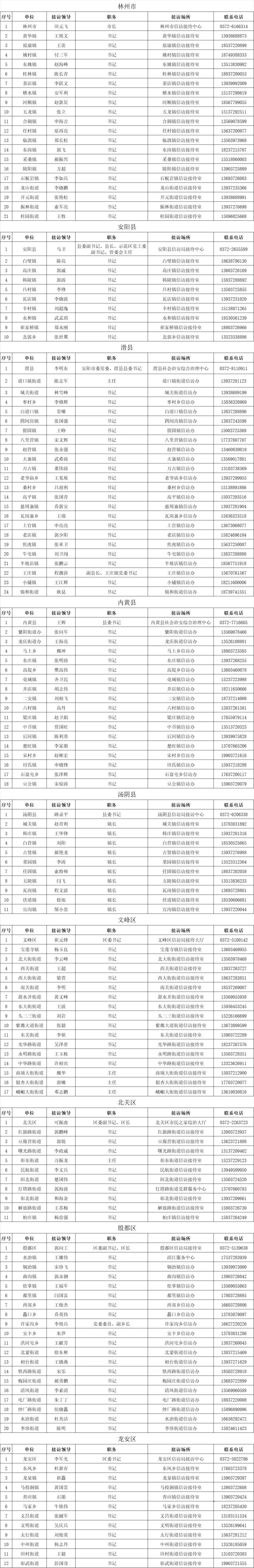 2026年1月12日(周一)安阳市各县(市、区)、乡(镇、街道)党政领导接访安排如下: