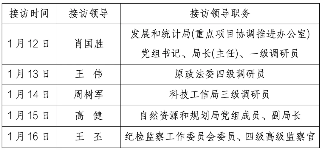 县(处)级领导干部接访预排情况予以公布。