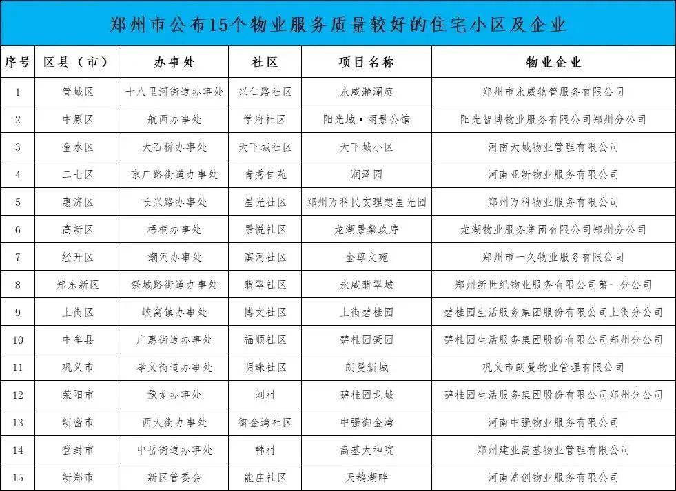 ★ 郑州公示的好物业小区,巩义一家上榜