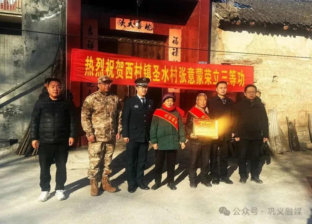 1月7日上午,西村镇坞罗村和圣水村洋溢着喜庆与自豪的氛围,一支由巩义市人武部、市退役军人事务局和西村镇相关领导组成的慰问组,来到西村镇坞罗村和圣水村,为荣立三等功的现役军人魏千行、张意蒙家属送去立功喜报。(来源:西村镇人民政府、巩义融媒)