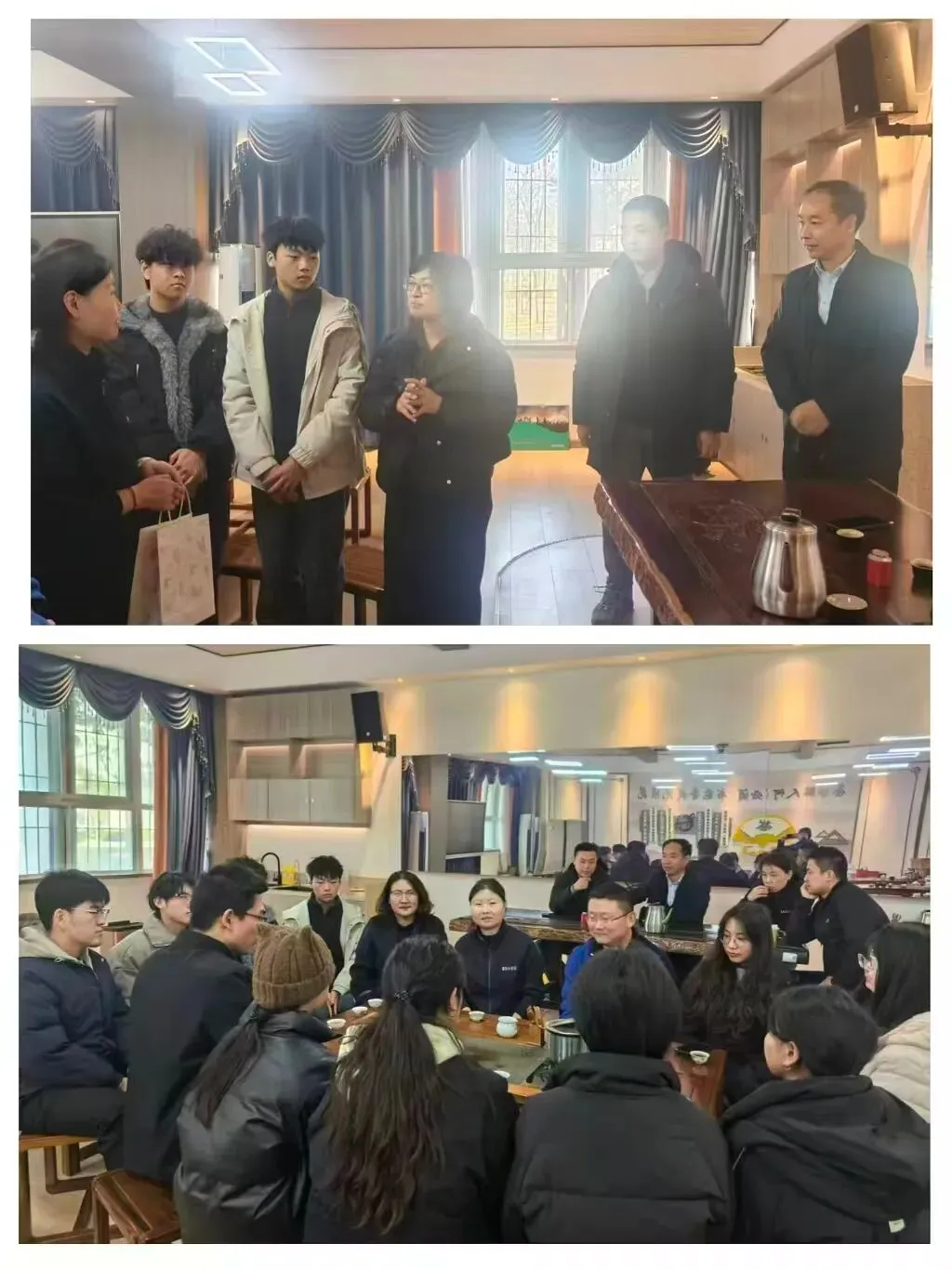 1 月 9 日,国际旅游学院2012届优秀毕业生、现任中德职业教育产教融合联盟中方秘书处办公室主任王湘茜,重返母校,在清源楼茶艺实训室与学弟学妹们展开了一场生动鲜活、启迪心智的深度对话。中德职业教育产教融合联盟中方秘书处秘书长刘宇、常务副秘书长李杏丽、副秘书长杨植,郑州旅游职业学院校长肖世才、副校长张建军、国际旅游学院院长刘瑞娜、部分教师代表以及24 级应用德语专业1班全体同学共同参与了此次活动。