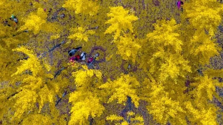 公园里、街道上、马路旁,银杏叶随风飘落,宛如金色的蝴蝶翩翩起舞。其他彩叶也不甘落后,为秋日增添了一抹亮丽的色彩。任谁走在其中,都会沉醉于此番美景……