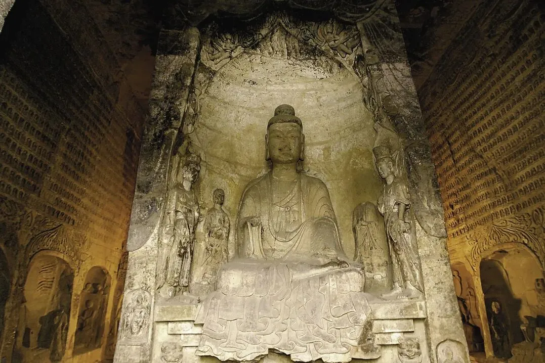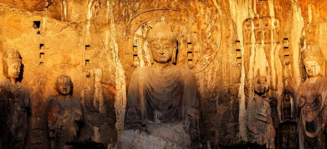 龙门石窟始凿于北魏孝文帝时期,现存造像10万余尊,佛塔70余座,是中国规模最大的石刻艺术宝库之一。卢舍那大佛是最具代表性的佛像,神态庄严而慈祥,雕刻技艺精湛。