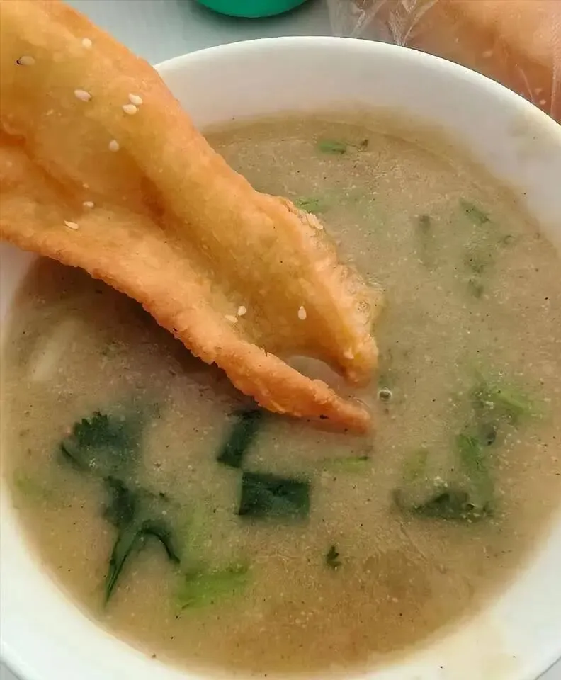 豆沫则是豫北风味在郑州早餐界的延伸,很多老人的心头好。 它不是豆浆,而是用小米面为主料,搭配花生、大豆、粉条、芝麻、青菜等多种食材熬制而成,成品呈乳黄色,绵密顺滑。 地道的吃法必配一根现炸的油条,外酥里嫩的油条蘸着绵密的豆沫,咸香与麦香融合,简单却充满幸福感。