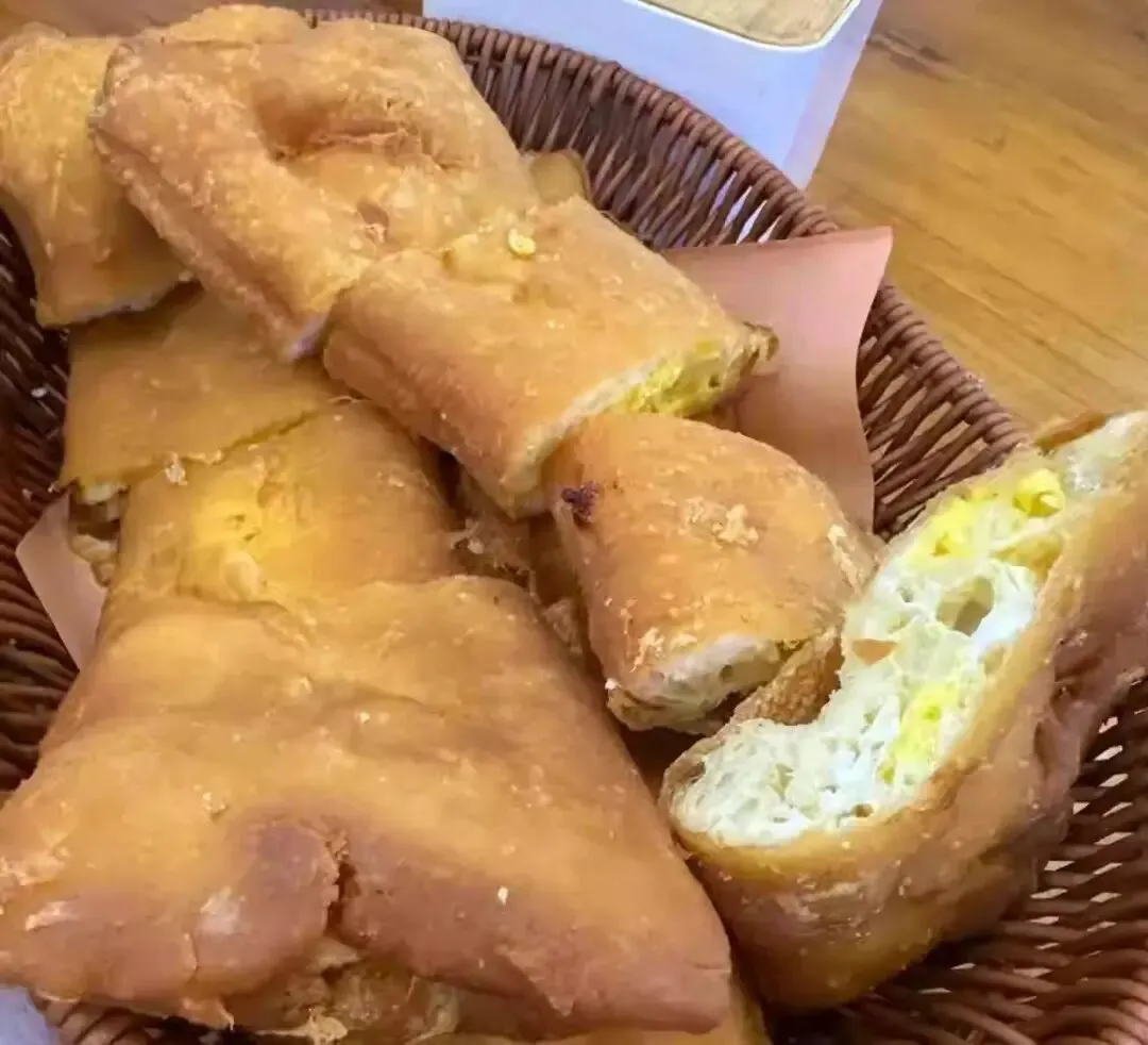 鸡蛋布袋是郑州独有的早餐特色,做法别致有趣。 师傅把发酵好的面团揉成小袋状,入热油炸至半熟定型,再用筷子挑开袋口,打入一个新鲜鸡蛋,继续炸至金黄酥脆。 成品像一个鼓鼓的小布袋,外皮焦脆,咬开后能看到嫩滑的鸡蛋与松软的面胚完美融合。