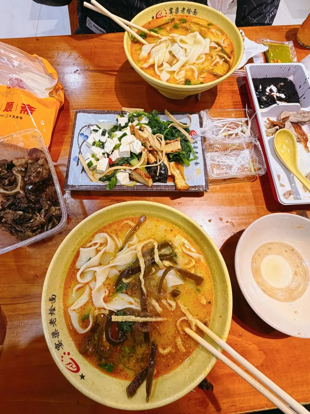 为了保证烤鸭口感就近找了家烩面馆坐下来,没想到烤鸭好吃的舔手指,皮脆肉嫩,口感回香。蘸上酱料,小饼一卷,一点不油腻。