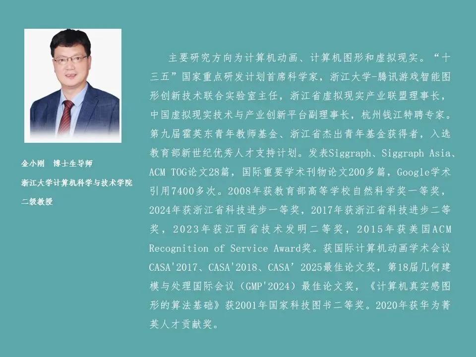 金小刚教授以《当三维遇AIGC:创作边界的再定义》为题,生动展示了AIGC技术如何从文本、图像、视频到3D内容全方位重塑创作生态。他结合团队在SIGGRAPH等顶级会议的研究成果,演示了文生3D肖像、风格化纹理生成、生成式物理引擎等前沿应用,指出AIGC将极大提升三维内容生产效率,降低创作门槛,为数字内容产业、工业设计等领域带来革命性变革。