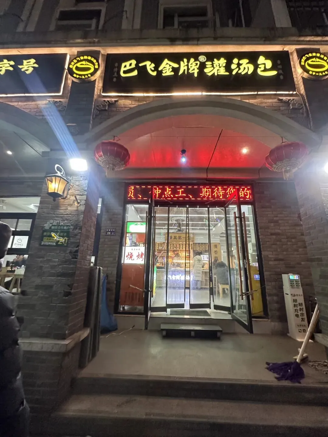 郑州巴飞灌汤包,这家店在北顺城街,离大融城不远,门头上挂着“清真第一笼”的匾额,看着就很有特色~