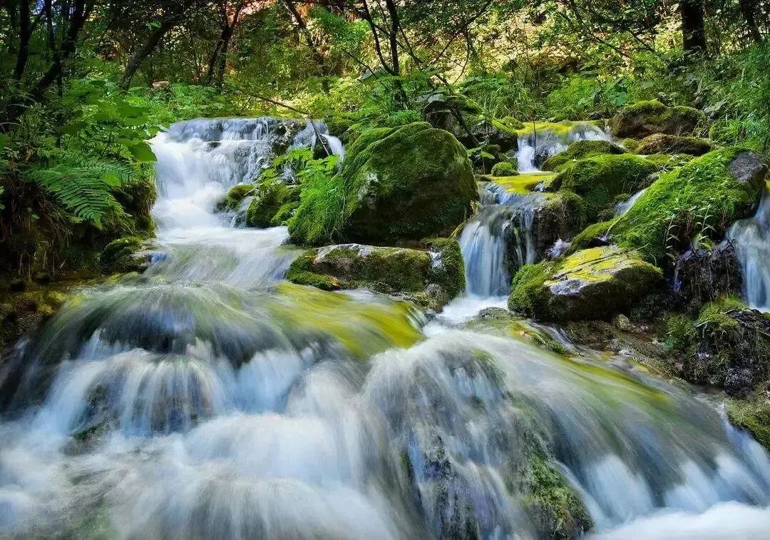 山水在这里倾泻,丛林在这里滋长。水流在山林间流过,瀑布成群地跳动,仿佛与大自然幽了个会。