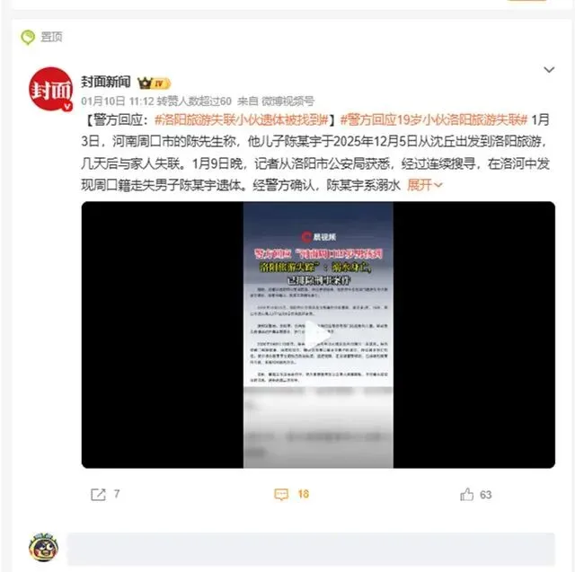 19岁的陈某宇,本该在洛阳的烟火气里打卡老君山、夜游龙门石窟,却把生命永远留在了洛河冰冷的河水中!