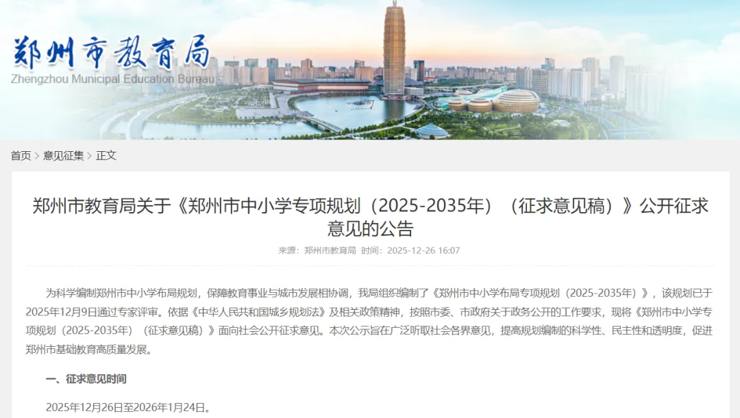 近日,关乎郑州未来 10 年基础教育发展的重磅文件 ——《郑州市中小学布局专项规划(2025-2035 年)(征求意见稿)》正式公示!这份覆盖全市 7567 平方公里的教育蓝图中,上街区被重点关照,从 11 个教育单元的精准划分,到产业园区的教育配套倾斜,每一项规划都紧扣上街发展需求,为上街家长和产业人才送上实打实的教育红利!