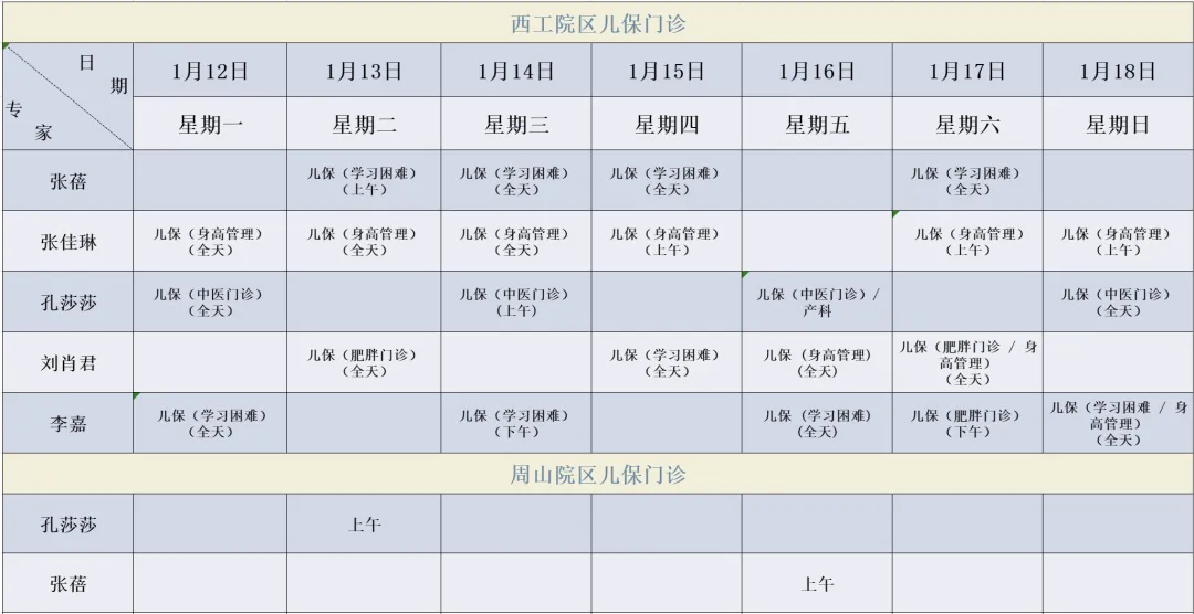 郑州大学附属洛阳市中心医院儿科/儿保门诊2026年1月12日—2026年1月18日专家坐诊时间