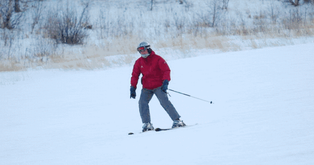 2、转弯时,除了雪板对雪面的加压外,加压的脚掌有向内转向的动作。