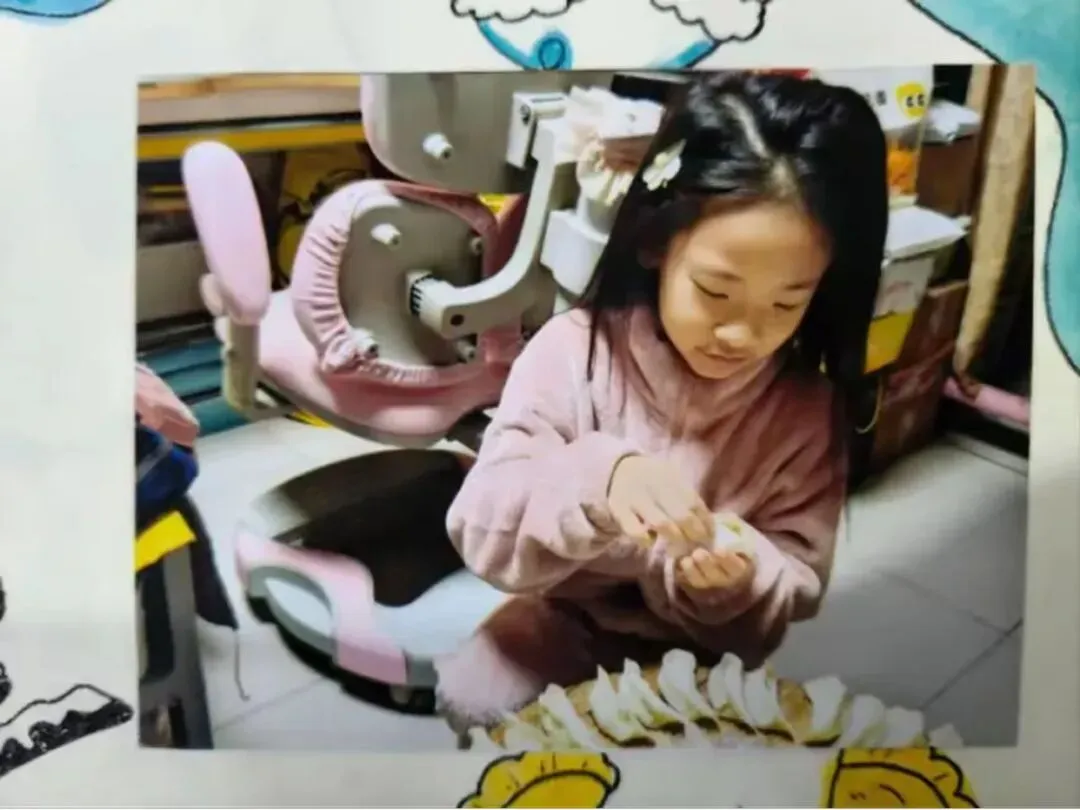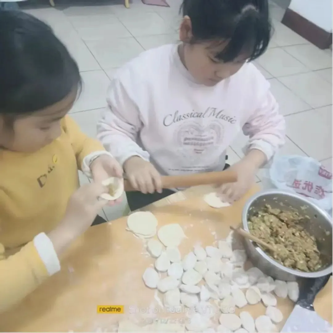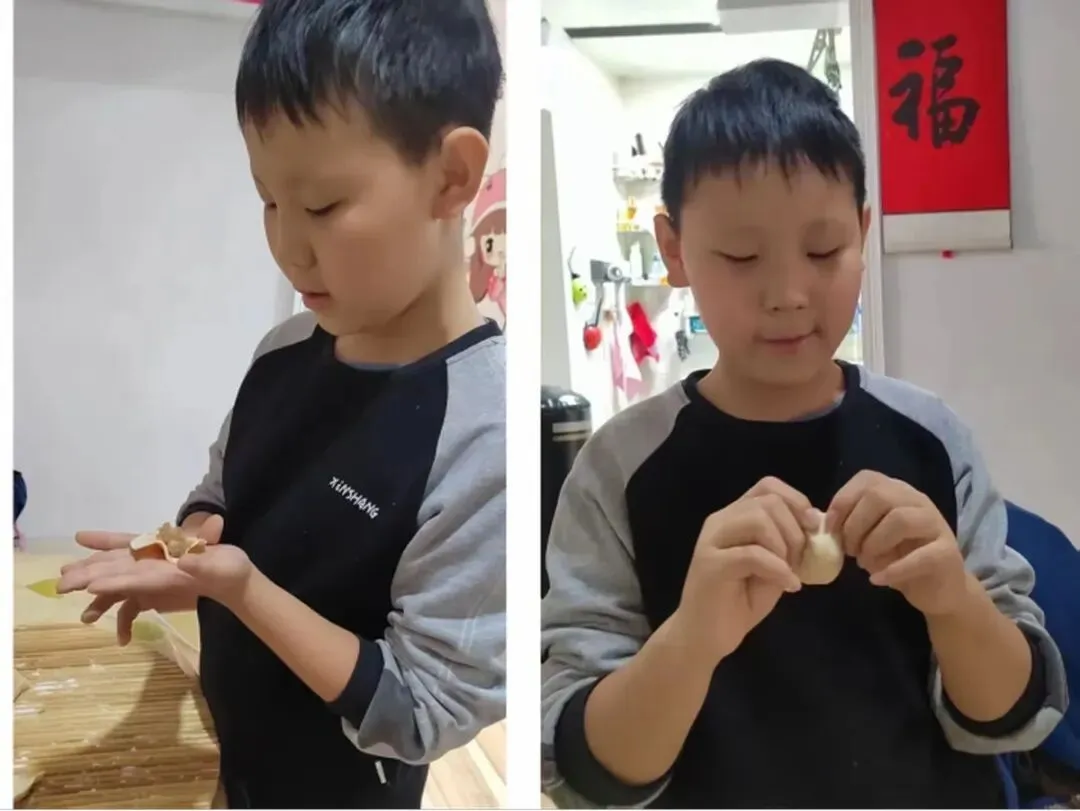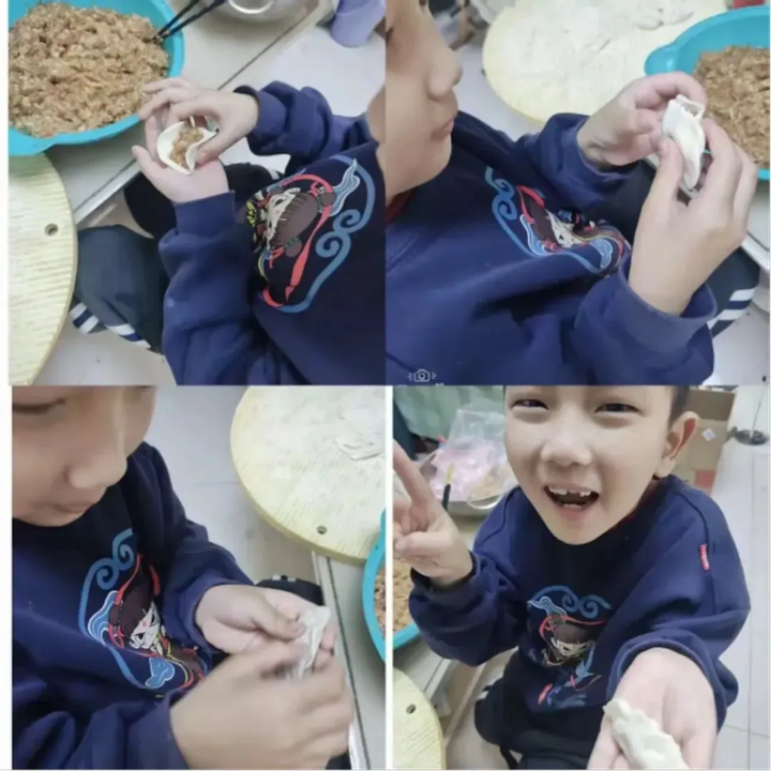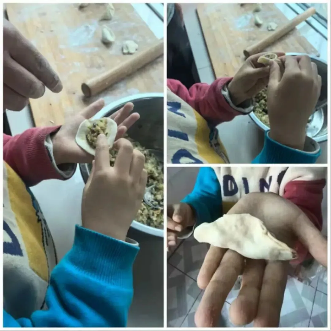 活动中,队员们化身“劳动小能手”,和家长分工协作:有的揉面擀皮,手法稚嫩却格外认真;有的创意包馅,捏出月牙形、元宝形等各式各样的饺子。擀面杖的滚动声、欢声笑语交织在一起,一个个饱满的饺子摆满案板。下锅煮熟后,队员们品尝着自己亲手包的饺子,脸上洋溢着自豪与满足。大家在擀、包、煮的过程中,不仅掌握了包饺子的劳动技能,更体会到了家人协作的温暖,感悟到“冬至大如年”的团圆意义。