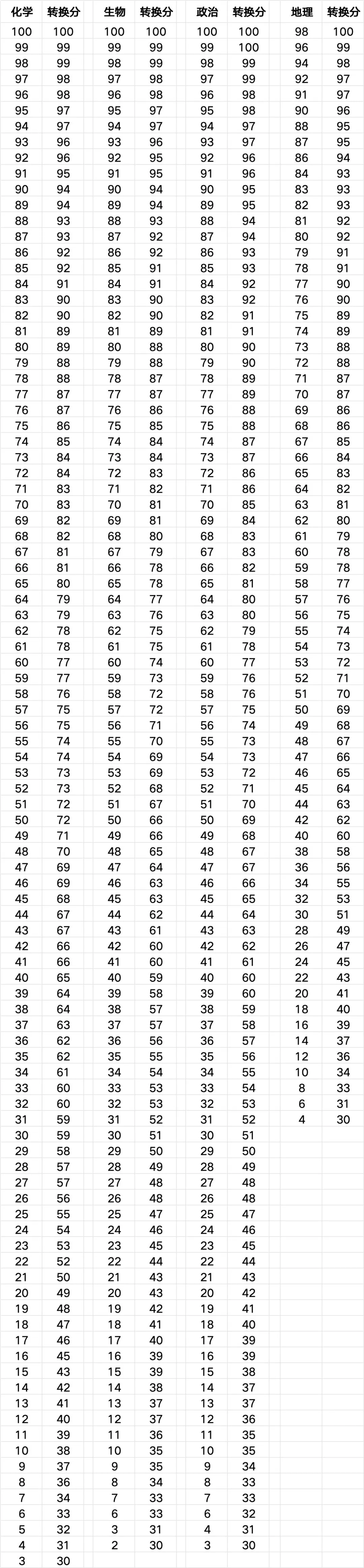 本次一模考试,郑州市根据选考科目组合分别划定了特控线(可理解为传统的一本线)和本科线,并提供了赋分前和赋分后的对照数据。